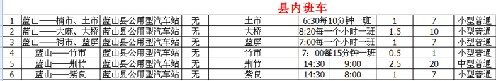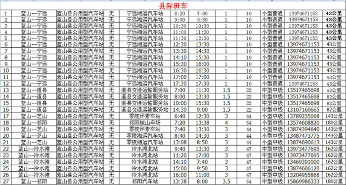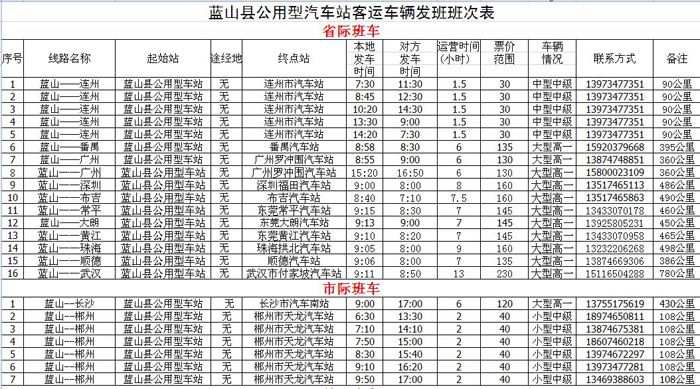 蓝山县公用型汽车站客运车辆发班班次表