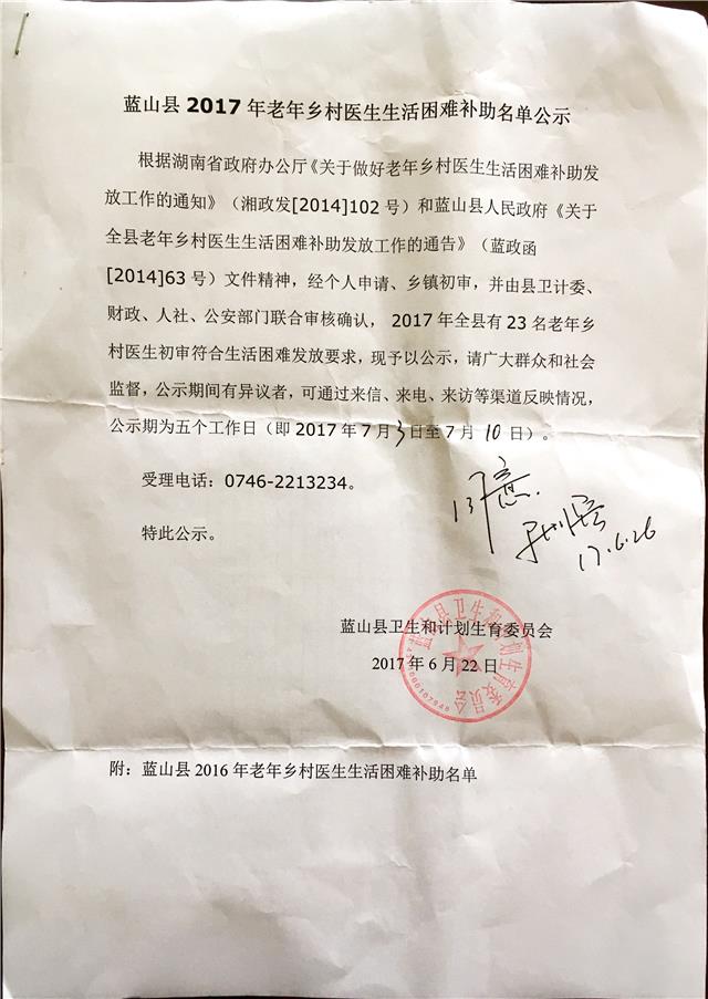 附件:蓝山县2107年乡村医生困难补助汇总.xls