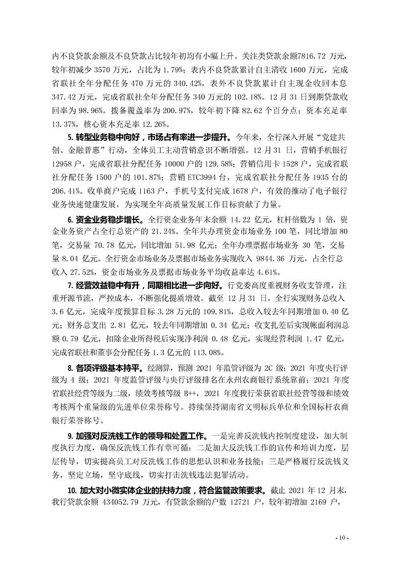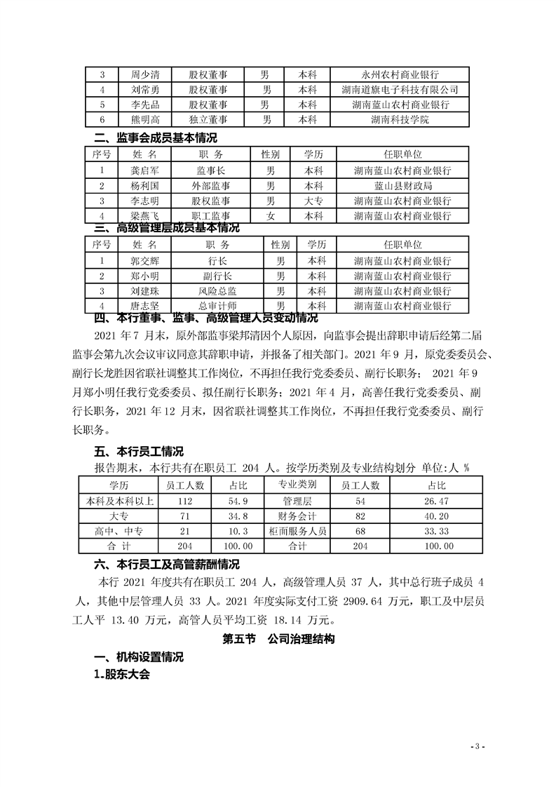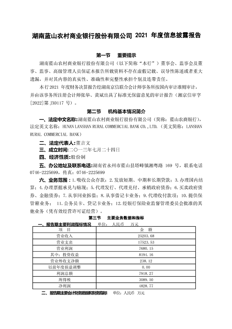 湖南蓝山农村商业银行 2021 年度信息披露报告