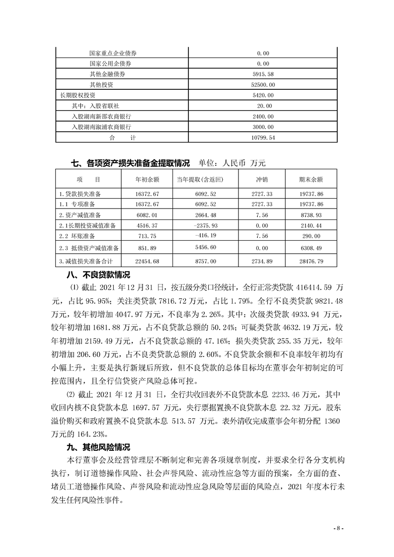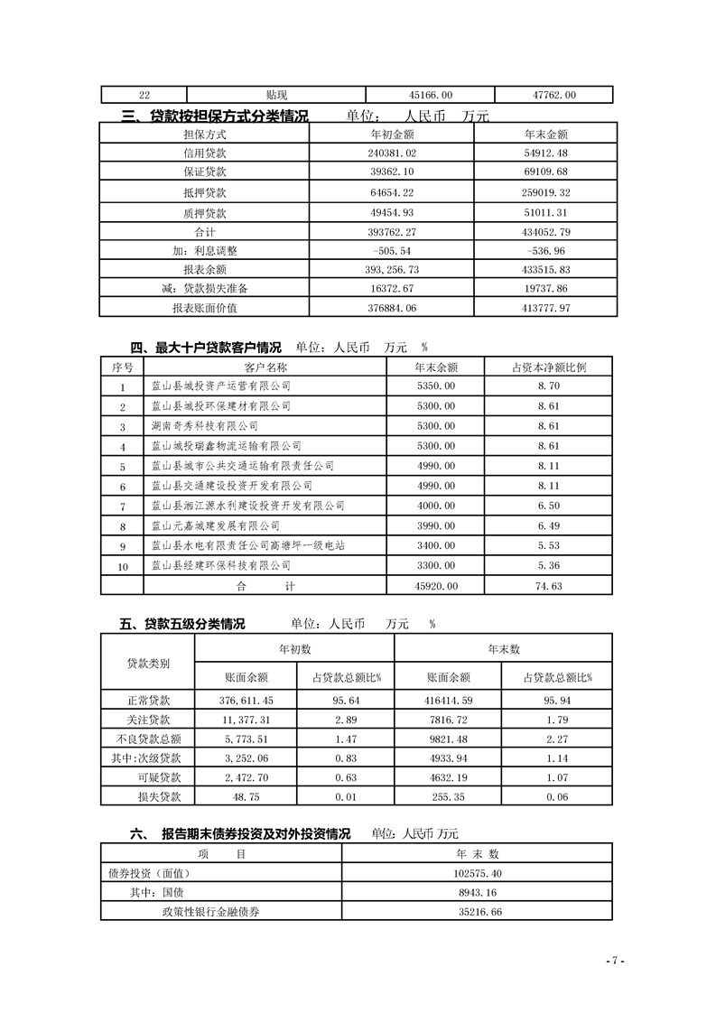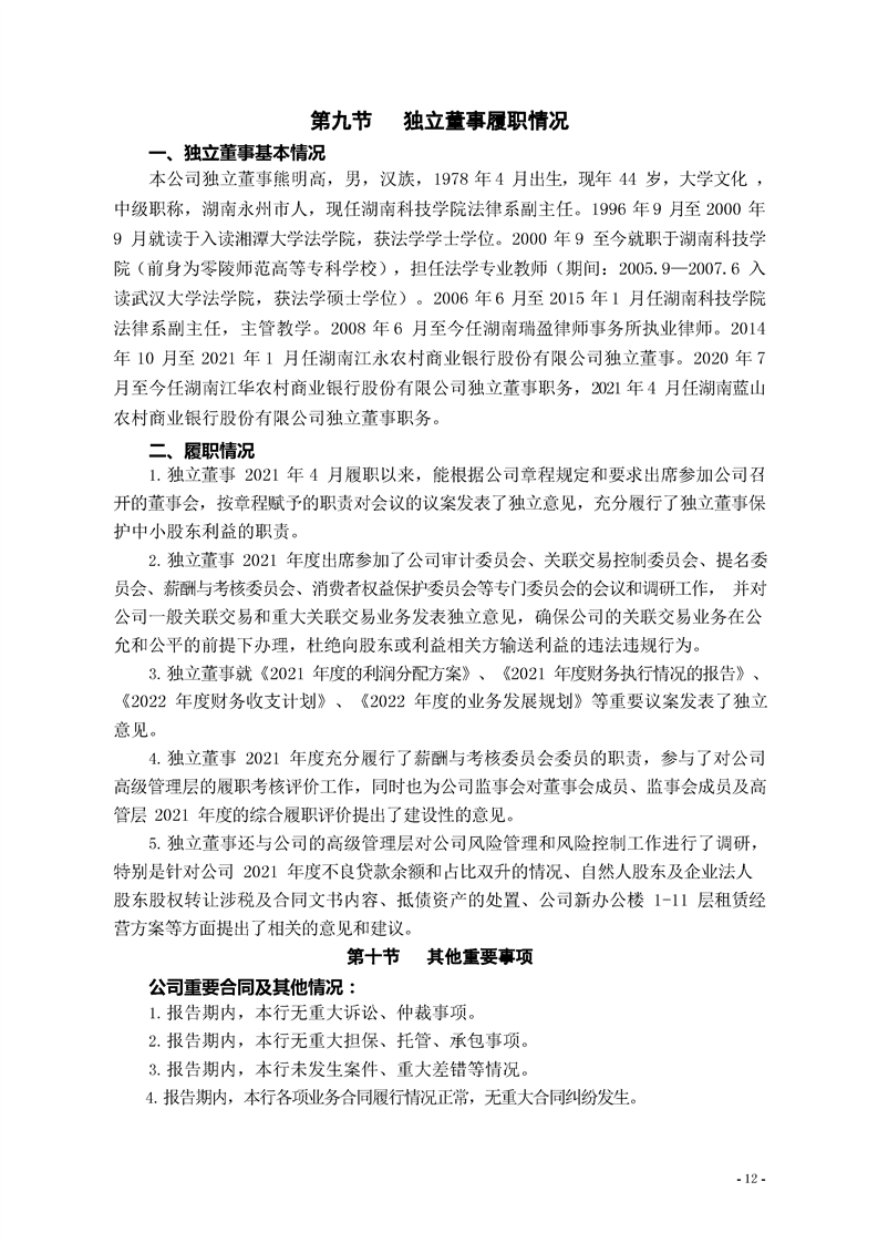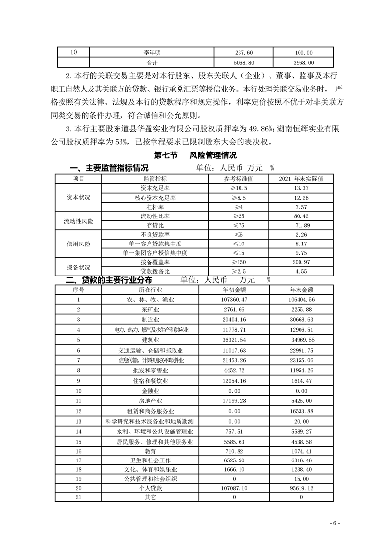 湖南蓝山农村商业银行 2021 年度信息披露报告