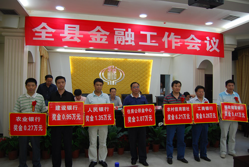 会议回顾总结了2009年以来的金融工作,兑现了信贷投放目标管理考核奖励,全面分析了我县当前经济金融形势,安排部署了今年的金融工作。