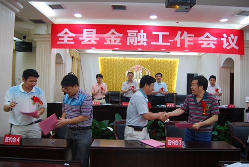 县委副书记、县长冯德校对全县金融工作提出三点要求,一是进一步转变观念,加强服务,进一步健全金融监管机制,加大信贷投放力度。二是创新机制,积极推进金融服务创新工作,探索新的信贷模式,提升金融服务功能。三是突出信贷重点,突出支持支柱产业、基础设施建设和社会事业发展。
