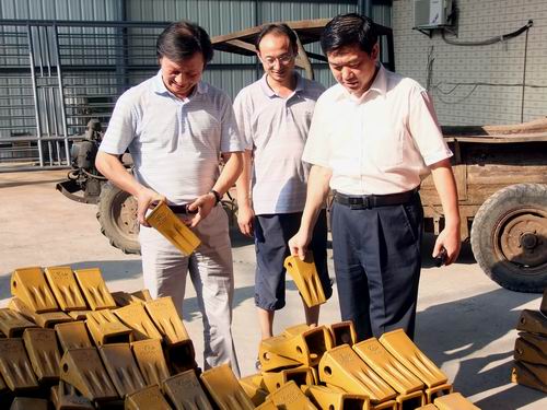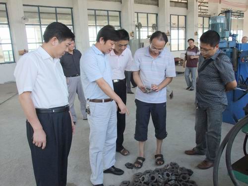 魏湘江、冯德校先后来到大洞办事处华兴钢铸厂、联佳铸造厂实地调研,详细了解企业生产经营、产品销售等情况。在华兴钢铸厂一条新上线的生产线旁,企业负责人高兴的向书记、县长介绍到,企业把目光瞄准大型上市公司,投入数百万元进行技改,通过技改,眼前这条生产线每17秒钟就可生产一个空调压缩机气缸,每天的生产量达1万多个,而且其产品通过质检部门验证,全部被格力、美的公司定购一空,华兴铸造厂也成为格力、美的两家公司的指定配件供应商之一。寨下工业园内的联佳铸造厂主要是生产矿山挖掘机相关配件,每个月的订单都排得满满当当,其产品全部远销到北京、上海、山东等大中城市。看到企业一派热火朝天的生产场面时,魏湘江、冯德校十分高兴,他们鼓励企业把目标定得再高一点,规模再做大一点,采用新工艺,生产拥有自身特色的高技术含量产品,以适应市场需求,占有更多的市场份额。