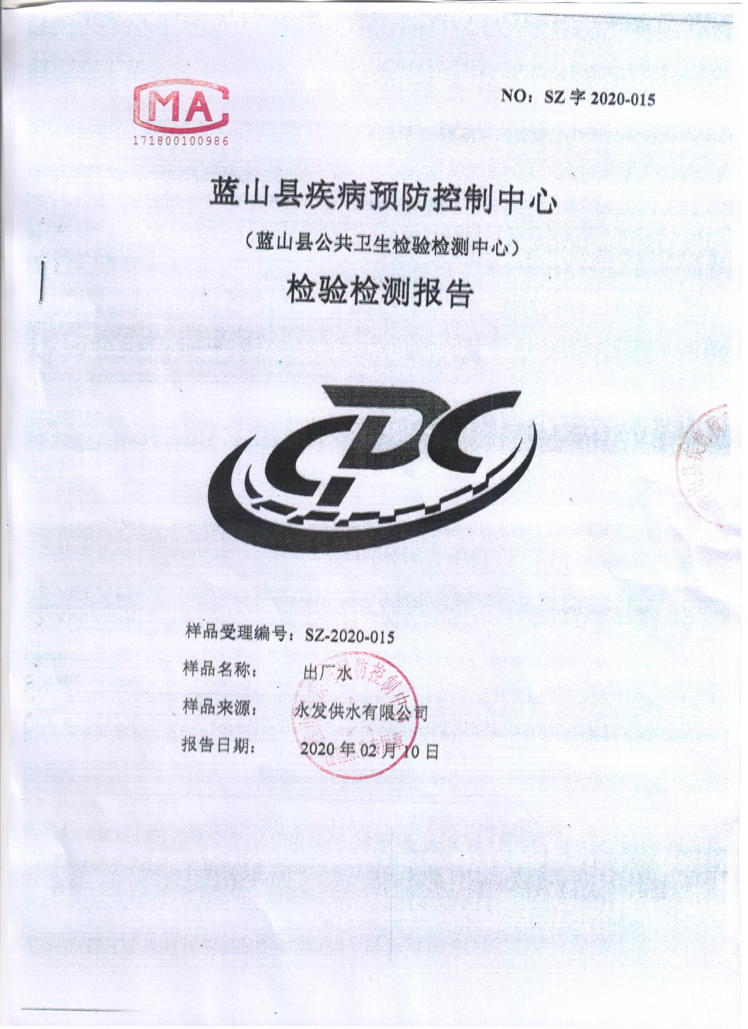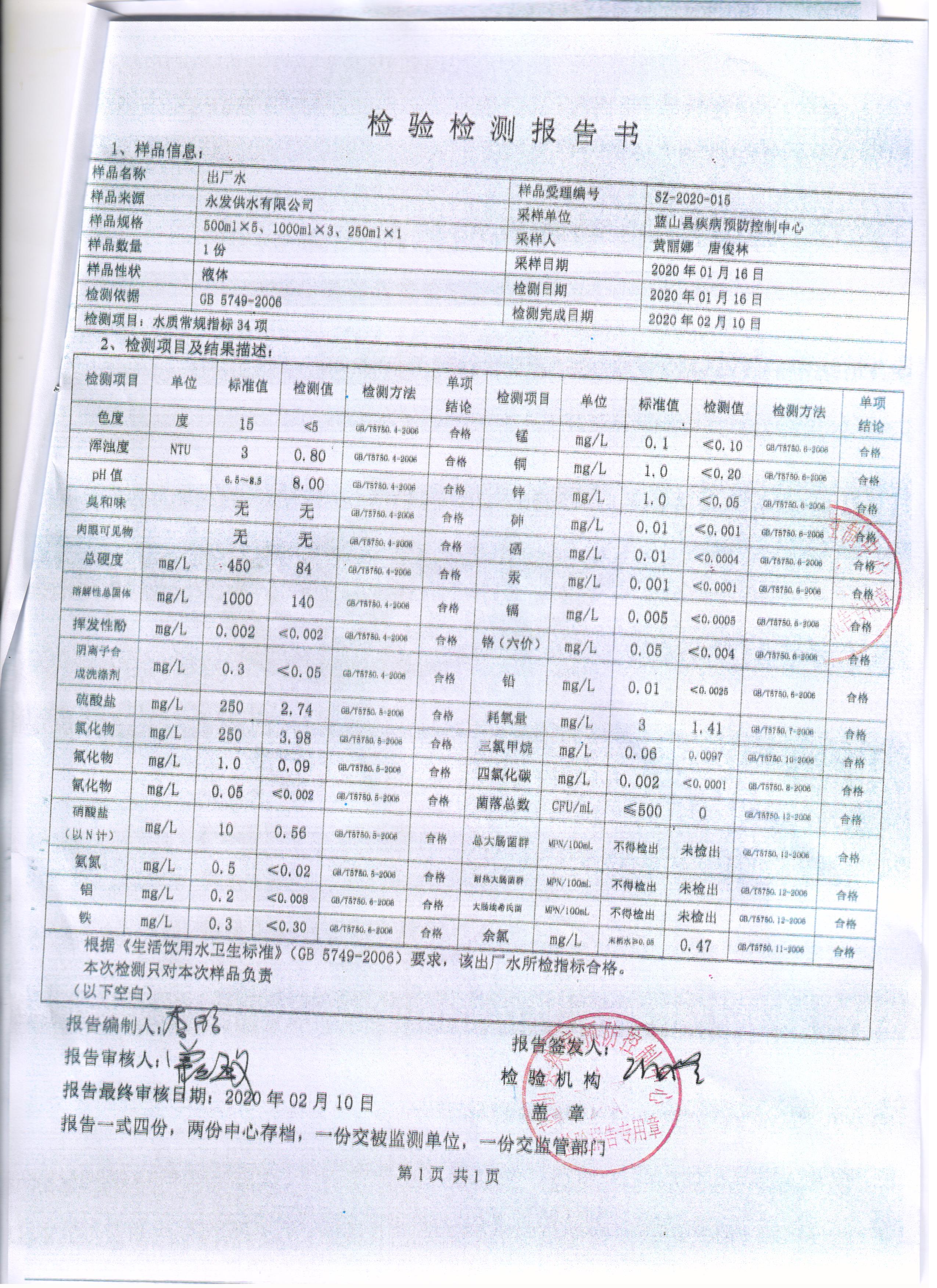 名称: 2020年2月份市政管网出厂水水质监测结果公示