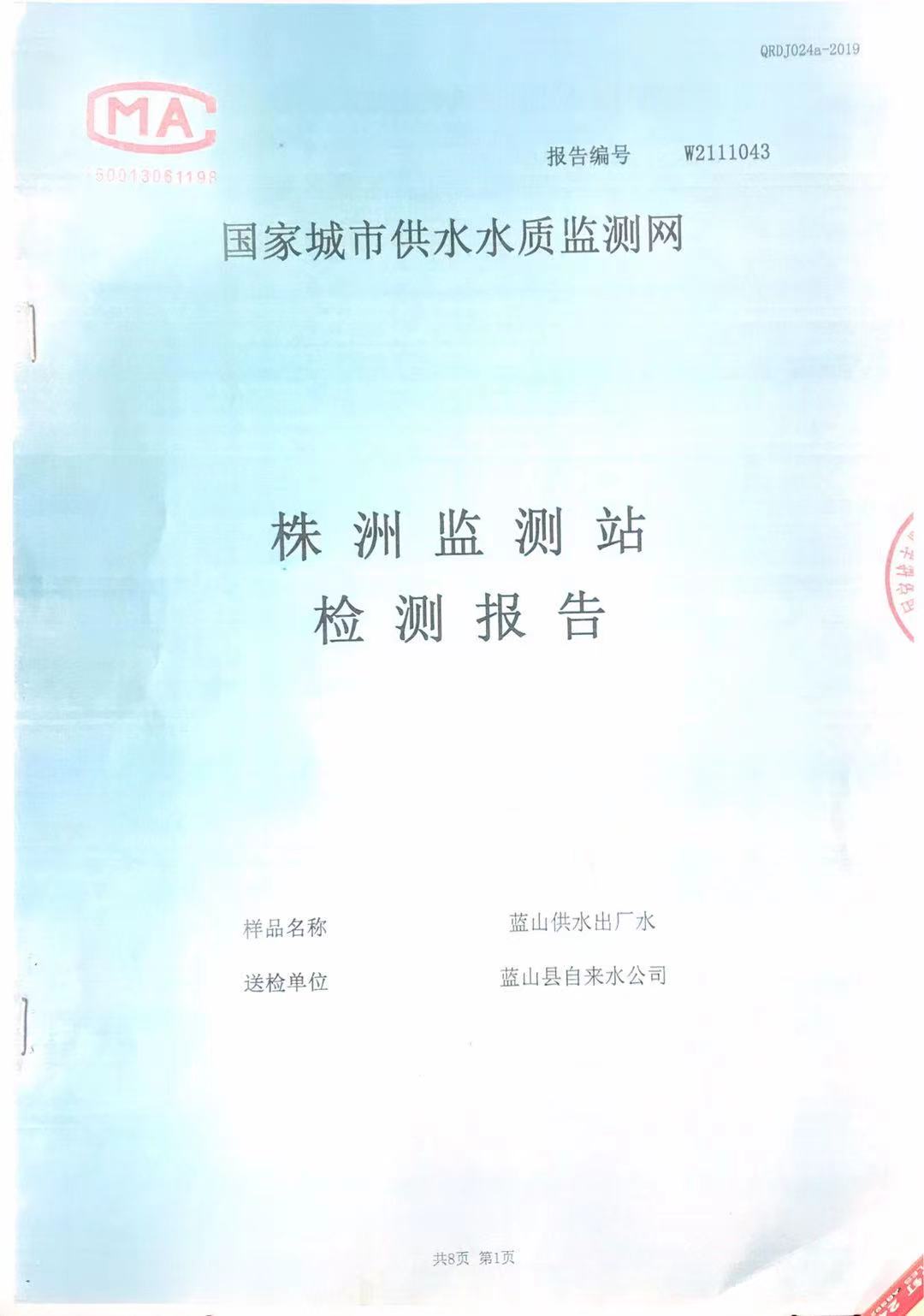 名称: 2021年11月份蓝山县供水出厂水水质监测结果公示