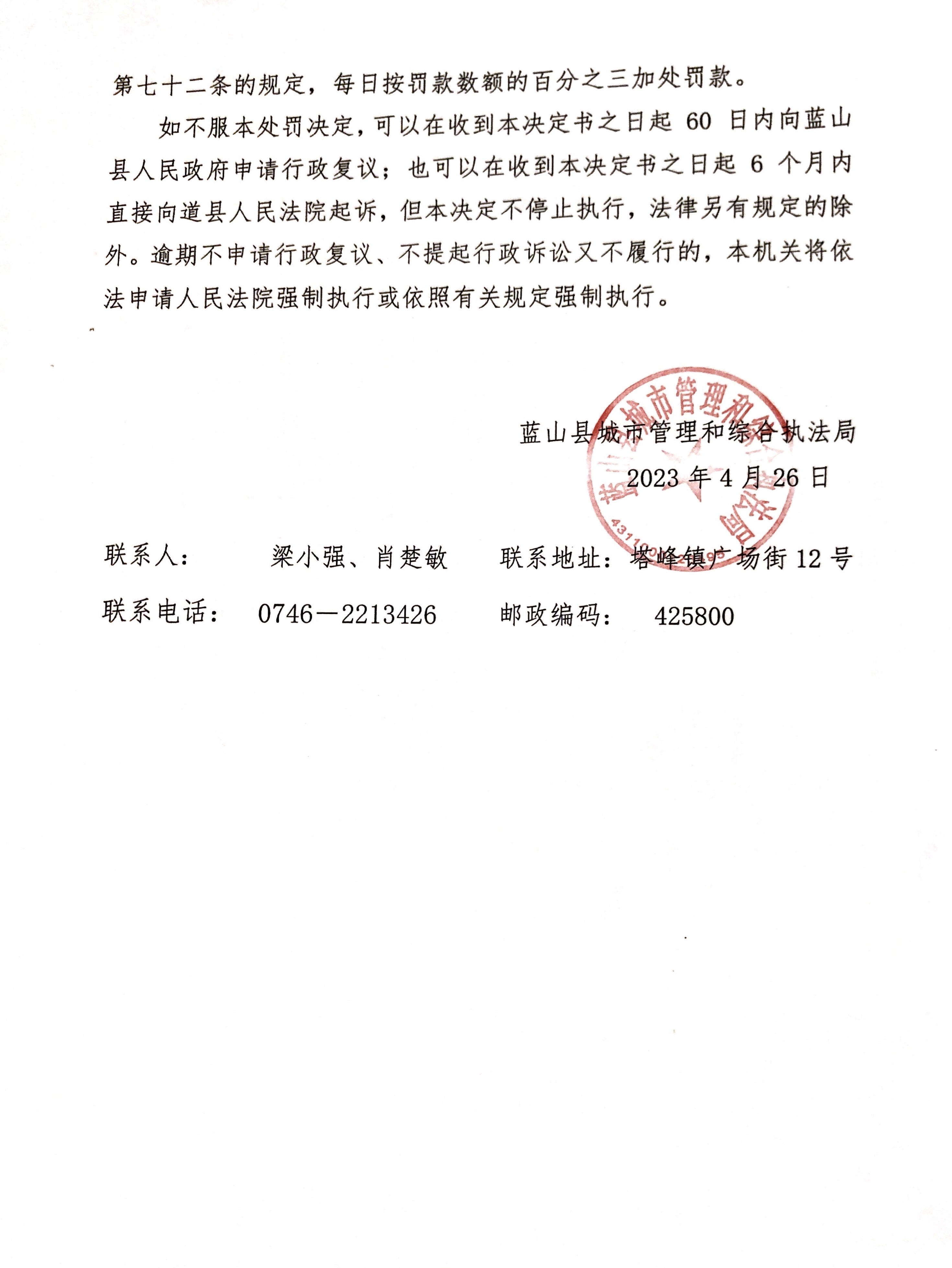 发文机关: 蓝山县城市管理和综合执法局 发文日期: 2023-04-27