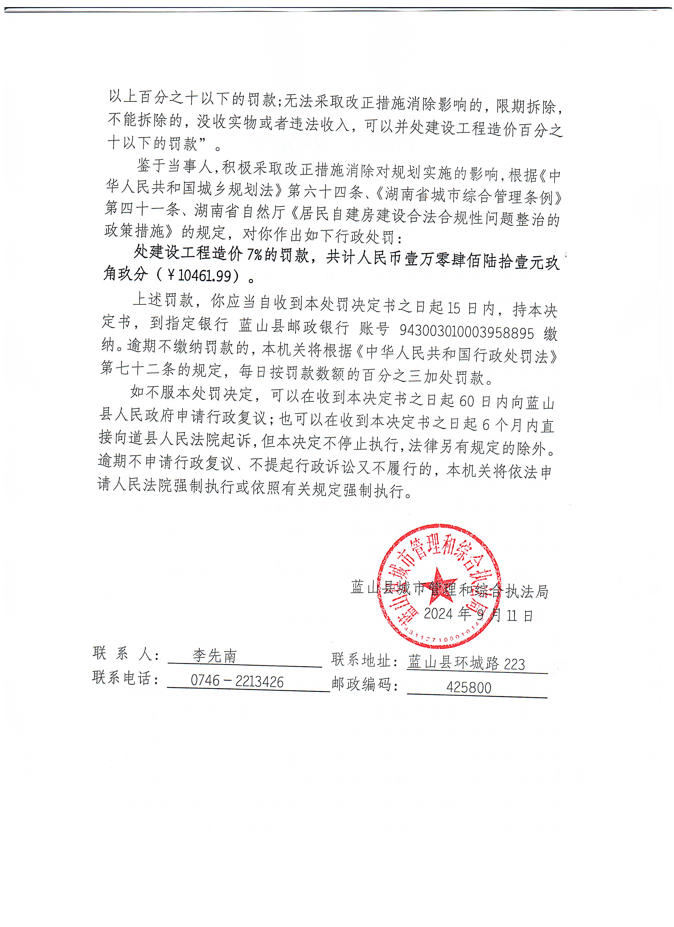 发文机关: 蓝山县城市管理和综合执法局 发文日期: 2024-09-11