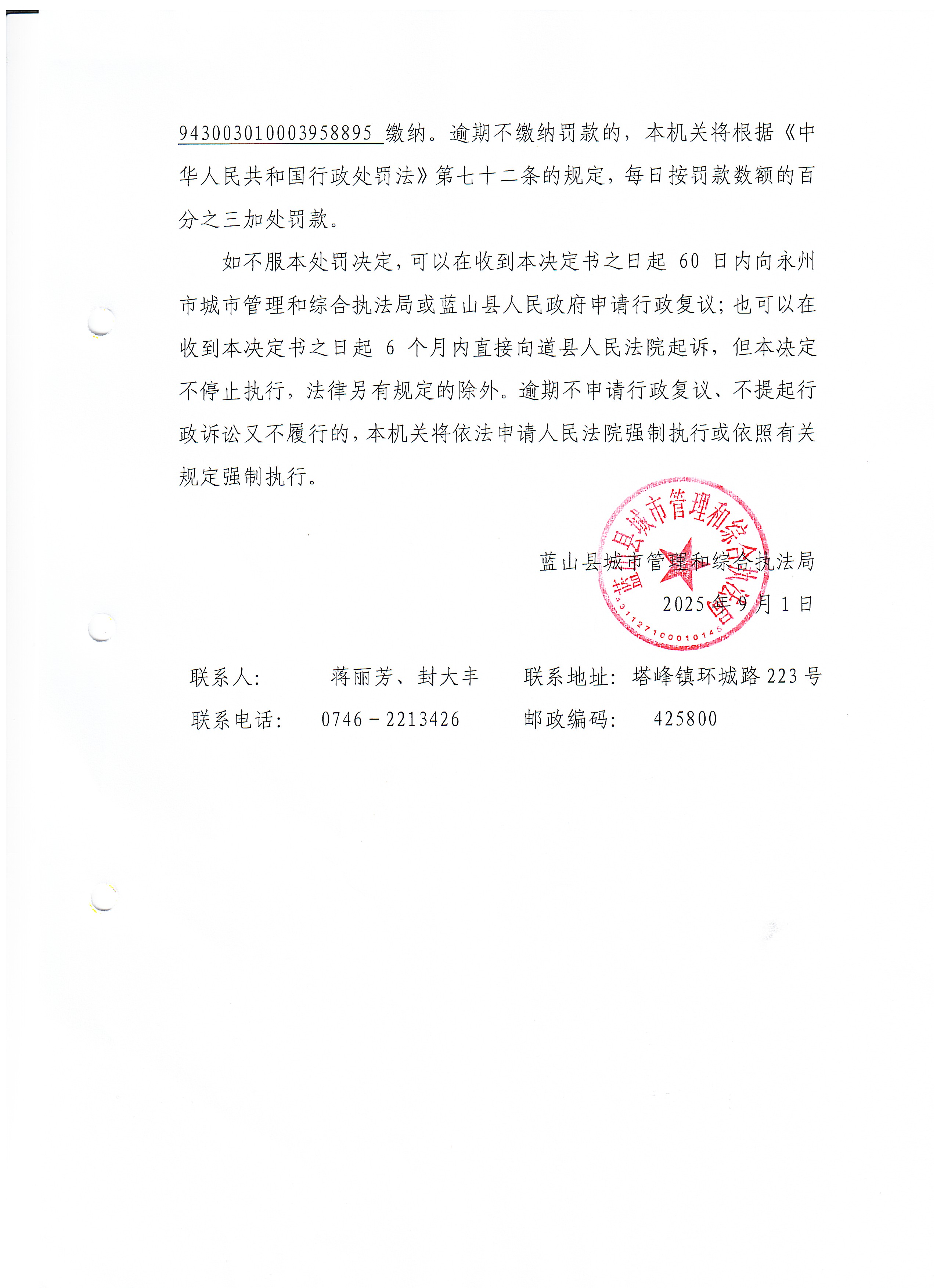 发文机关: 蓝山县城市管理和综合执法局 发文日期: 2025-09-22