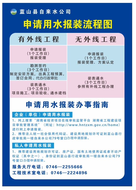 四、受理窗口:蓝山县行政审批局自来水公司79号窗口