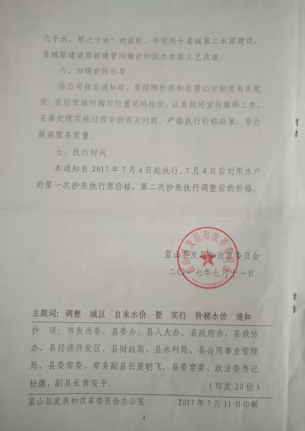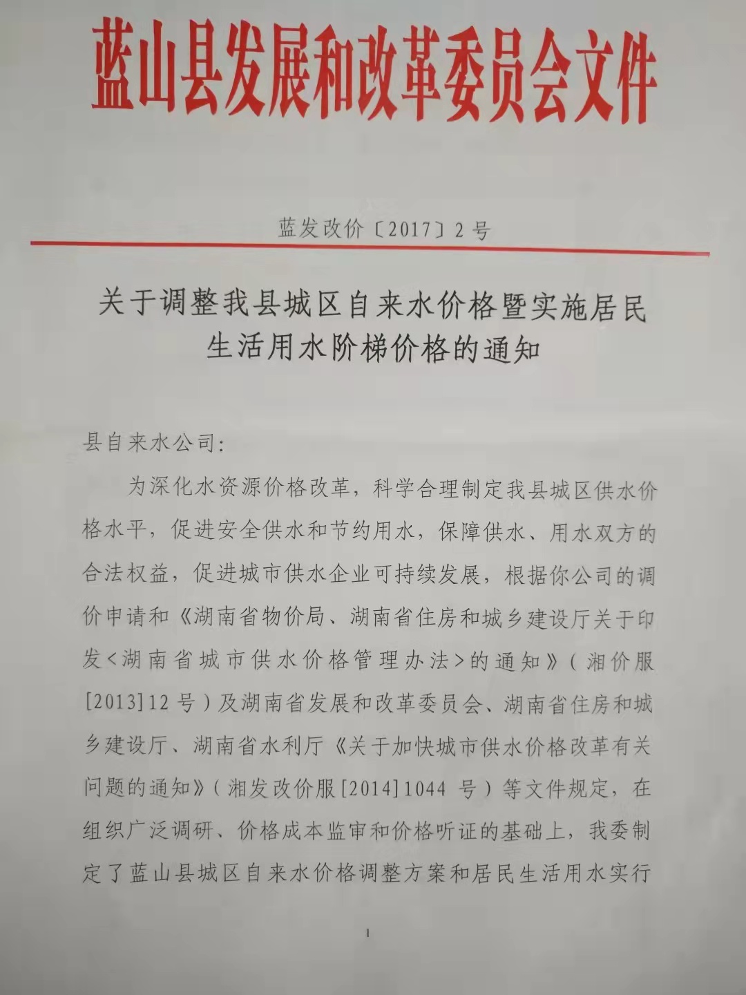 名称: 关于调整我县区自来水价格暨实施居民生活用水阶梯价格的通知