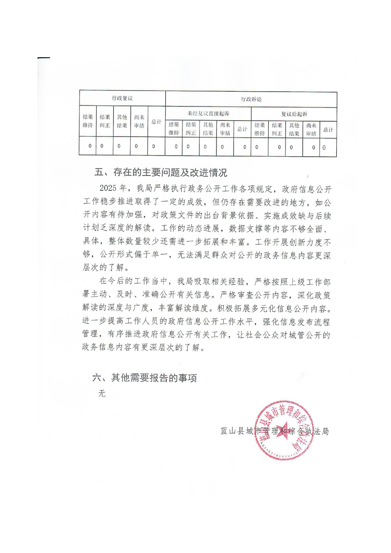 名称: 蓝山县城市管理和综合执法局2025年政务信息公开年度报告