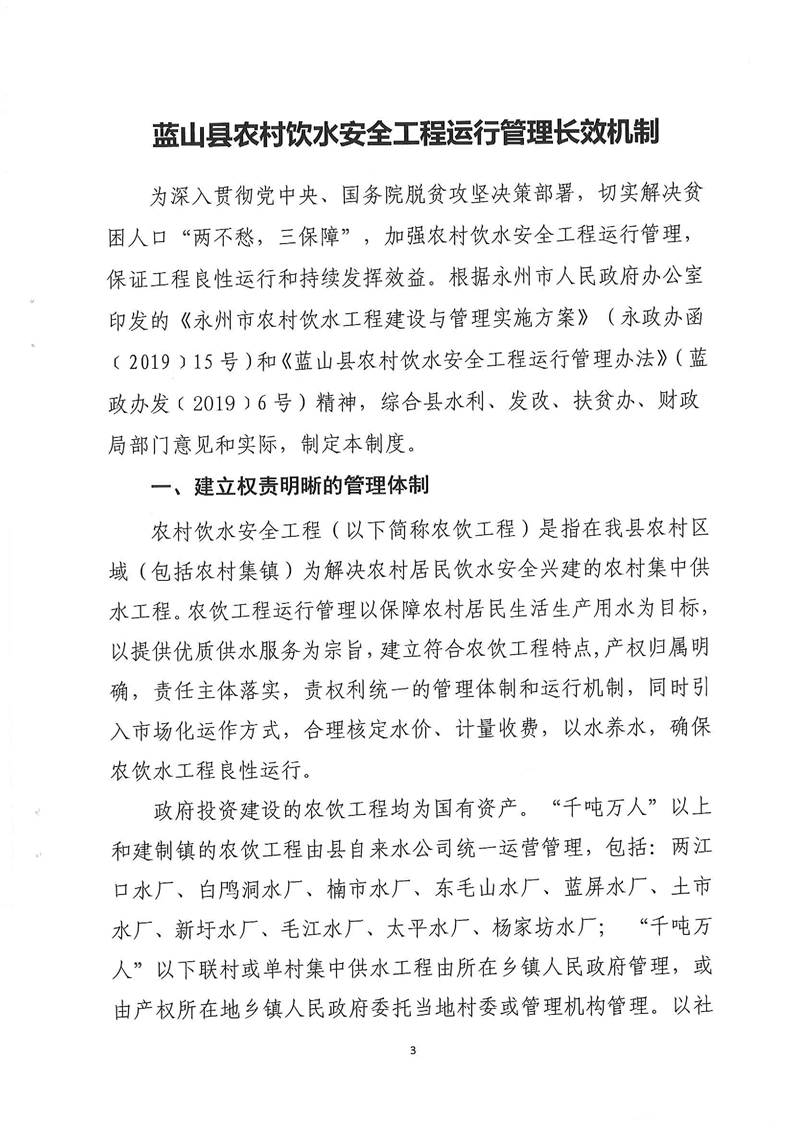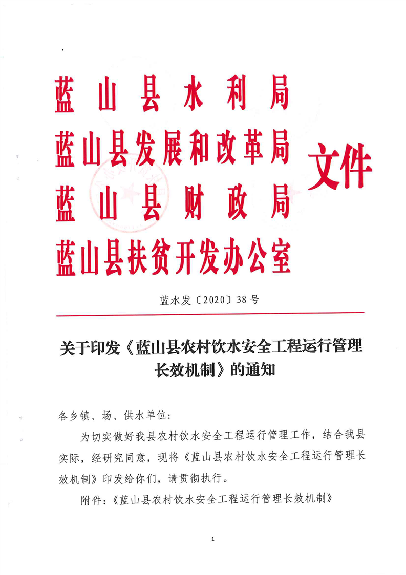 名称: 关于印发《蓝山县农村饮水安全工程运行管理长效机制》的通知