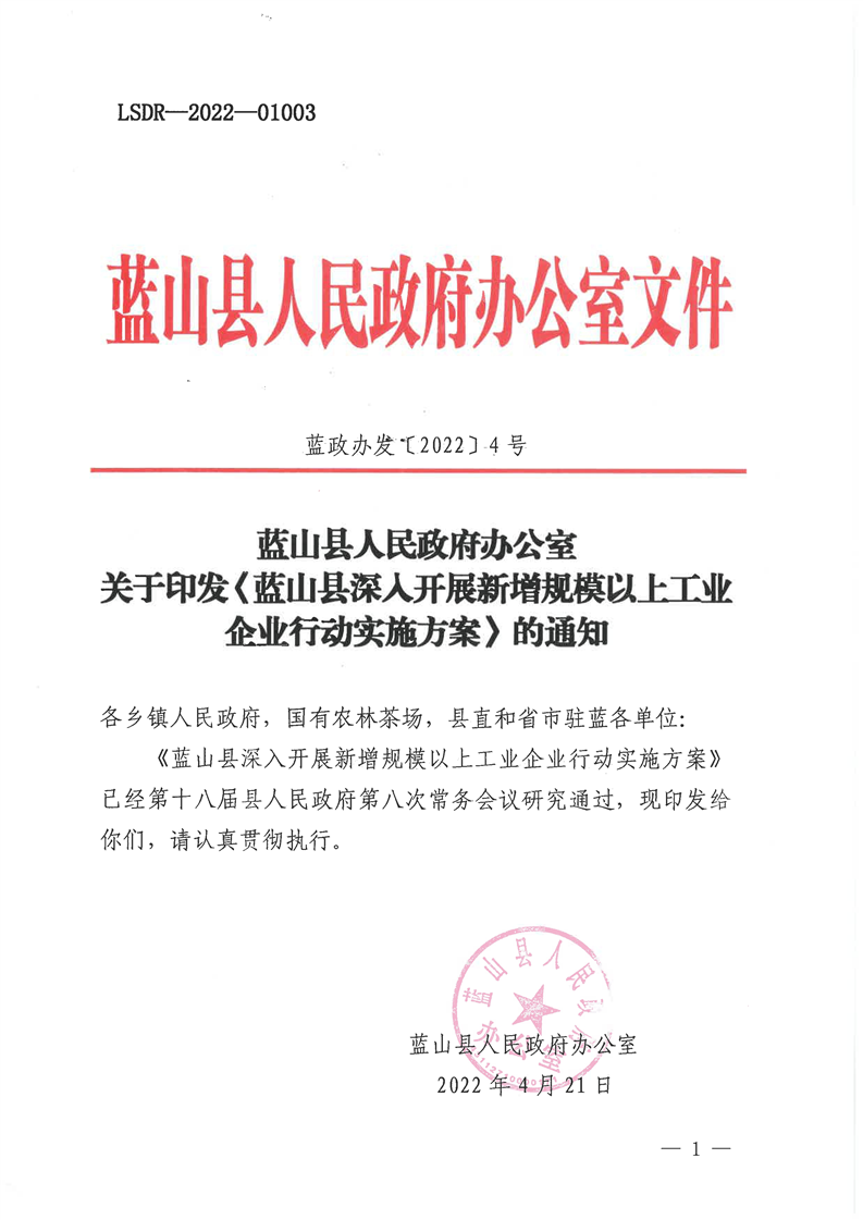 名称: 关于印发《蓝山县深入开展新增规模以上工业企业行动实施方案》的通知