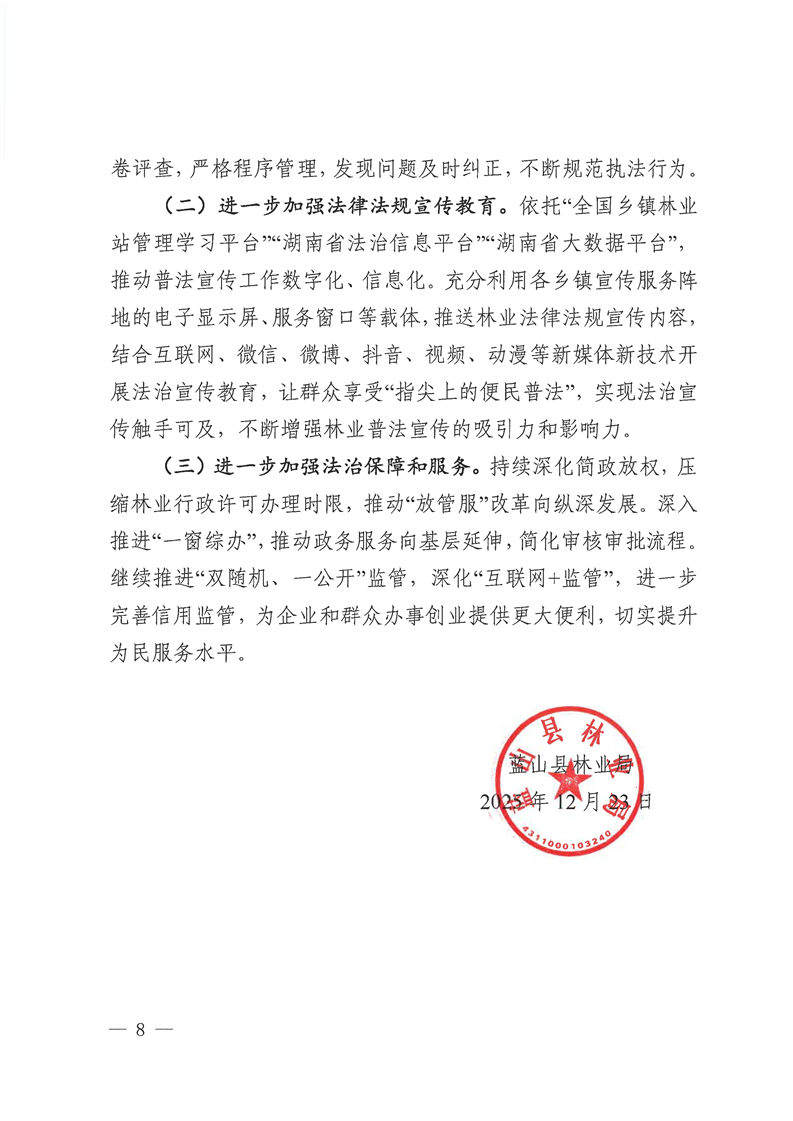 蓝山县林业局2025年法治建设工作报告