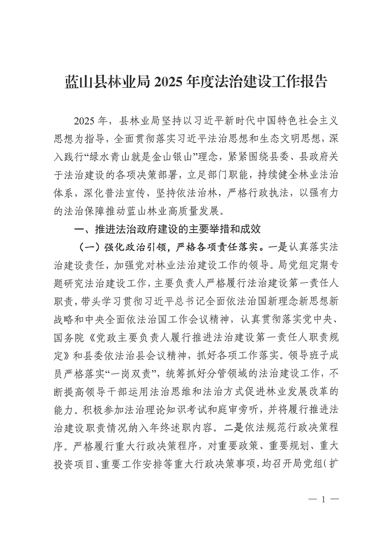 名称: 蓝山县林业局2025年法治建设工作报告