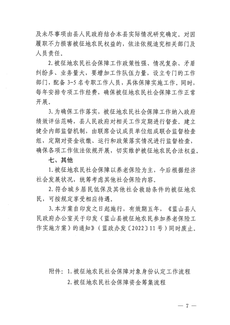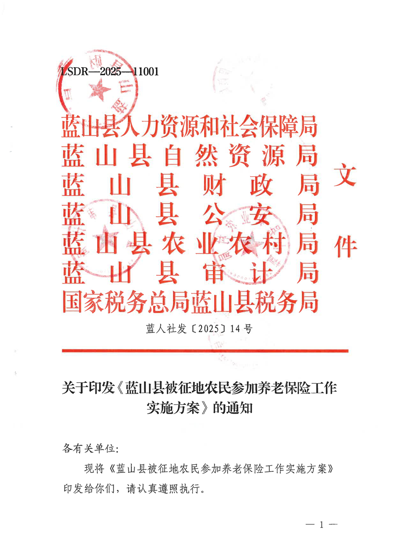 名称: 关于印发《蓝山县被征地农民参加养老保险工作实施方案》的通知