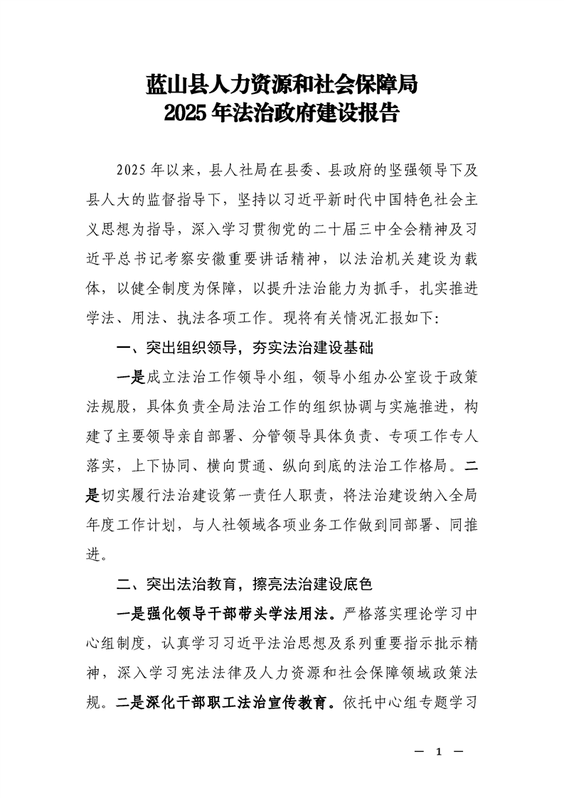 名称: 蓝山县人力资源和社会保障局2025年法治政府建设报告