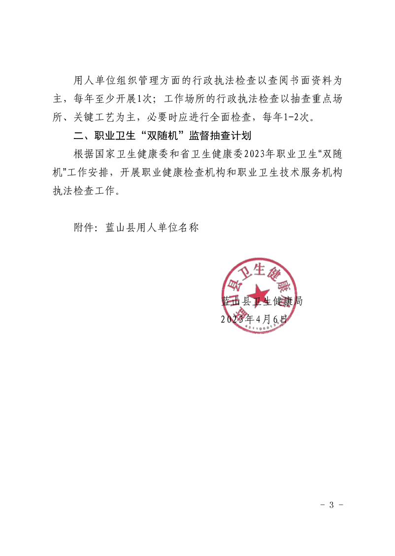 名称: 2023年度职业卫生行政执法检查计划