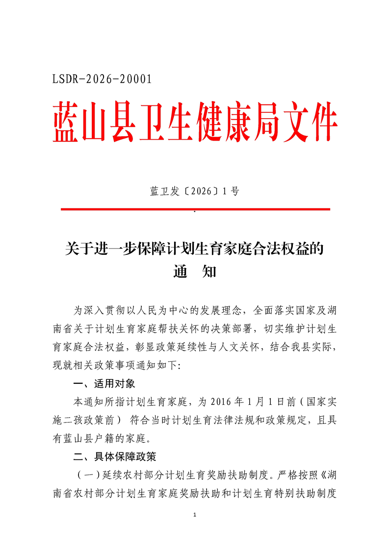 发文机关: 蓝山县卫生健康局 发文日期: 2026-01-05