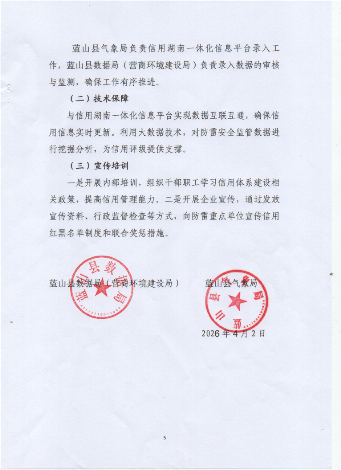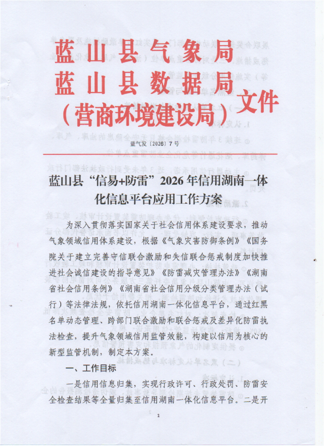 名称: 蓝山县“信易+防雷”2026年信用湖南一体化信息平台应用工作方案