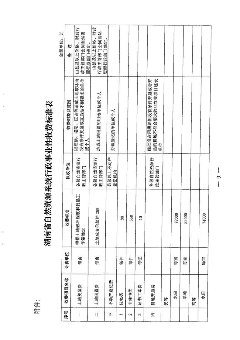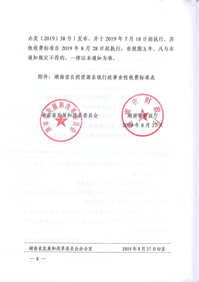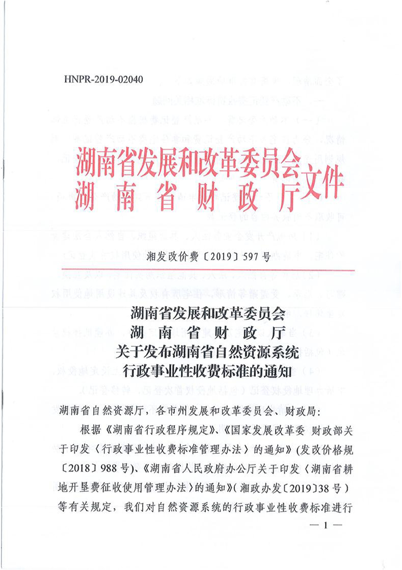 名称: 关于发布湖南省自然资源系统行政事业性收费标准的通知(湘发改价费2019.597号)