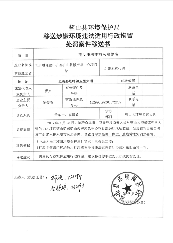 名称: 718项目案件移送书