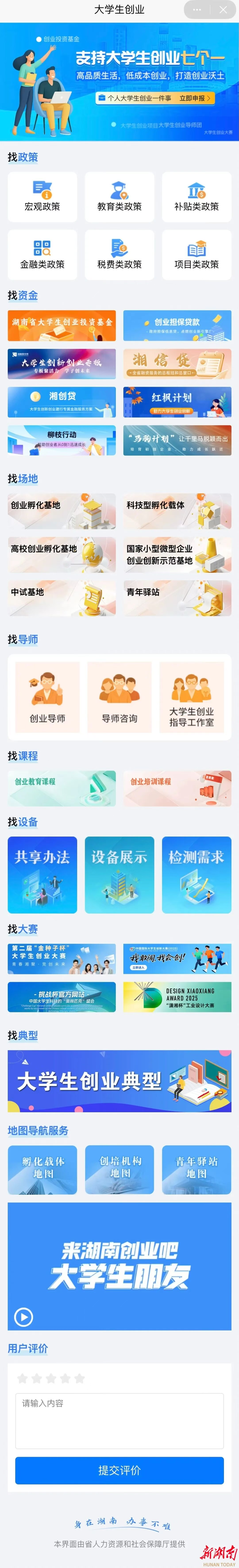 还有中南大学、长沙理工大学等高校创业指导工作室提供本校化、精准化的线下咨询与帮扶。