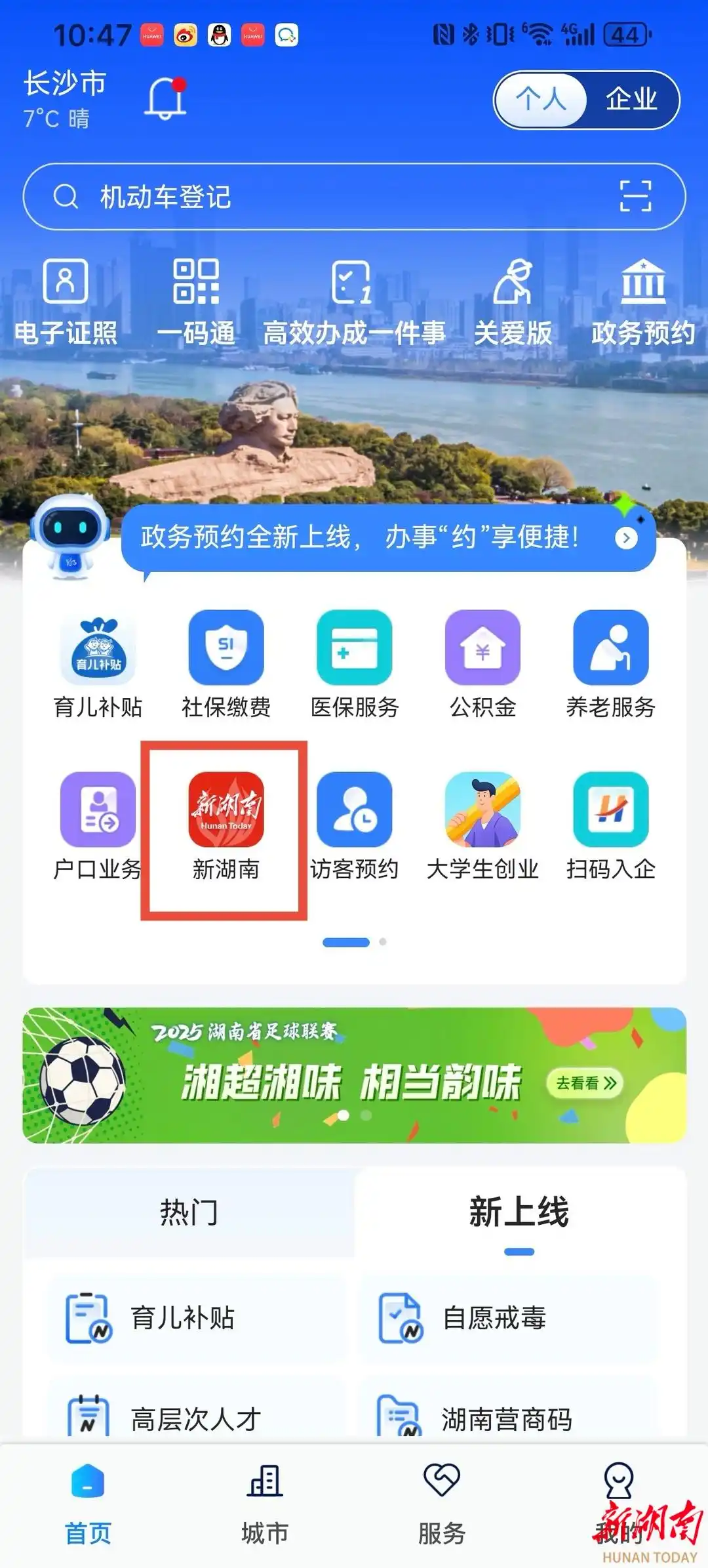 “湘易办”首页金刚区已上线新湖南资讯