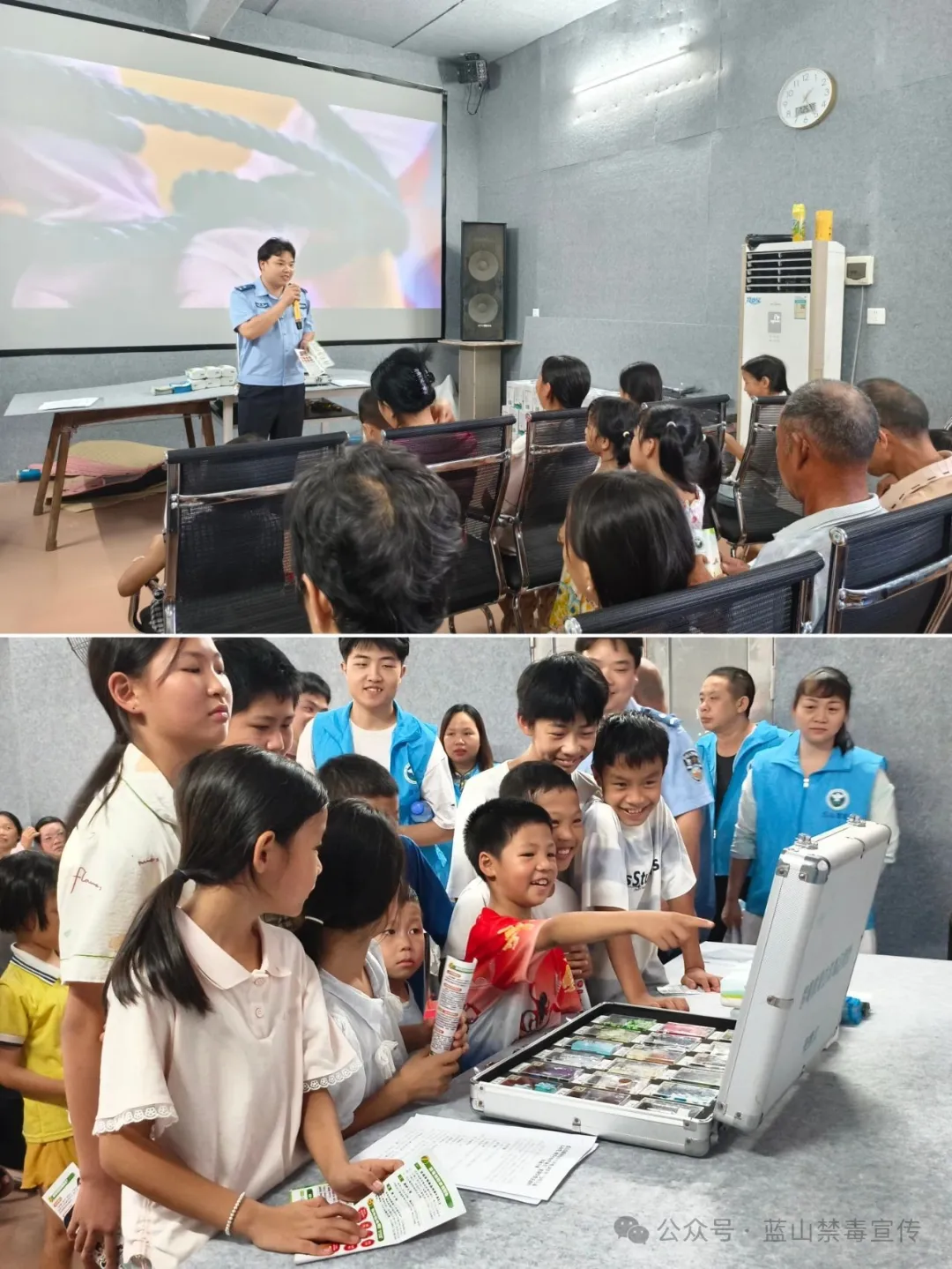 接着,大家一同观看蓝山县原创的青少年防范药物滥用禁毒宣传视频《警惕才是终极铠甲》。视频里,“缉毒美少女战士”能识破不少毒品,但碰到伪装成 “减肥药”的“蓝宝宝”,因为不懂相关知识就中招了。这告诉大家,面对新型毒品,一定要提高警惕。