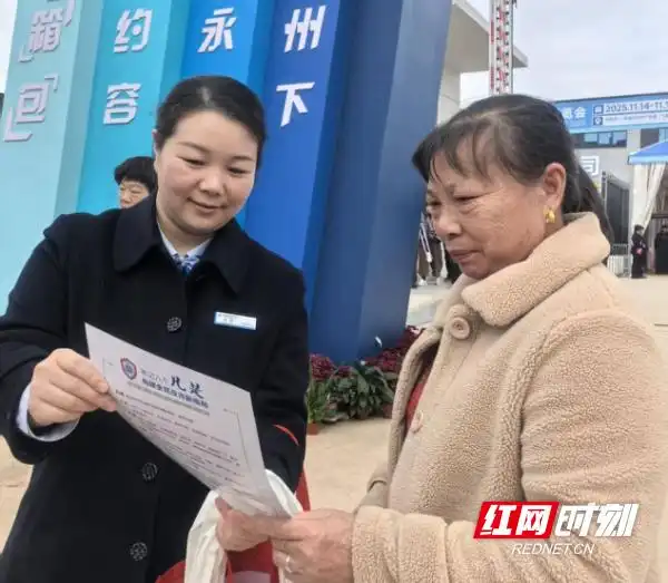 近日,在蓝山国际皮具箱包博览会现场,各式各样的箱包将展台挤得满满当当,“保障金融权益 助力美好生活”的红色横幅,把不少逛展人的目光吸引了过来——建行永州蓝山支行的“金融服务角”,就扎在了最热闹的展区入口。