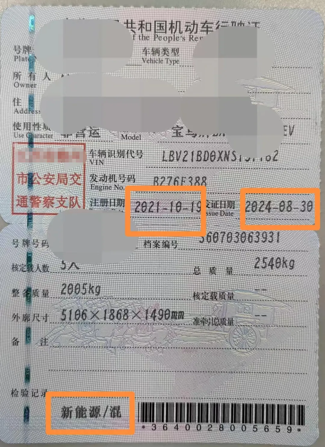 新能源汽车:注册登记日期应在2018年4月30日前(含当日),发证日期应在2024年7月25日之前。