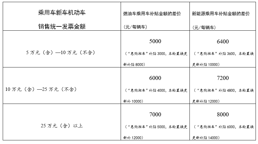 其中,汽车置换更新补贴的额度,由各个市州自行确定。