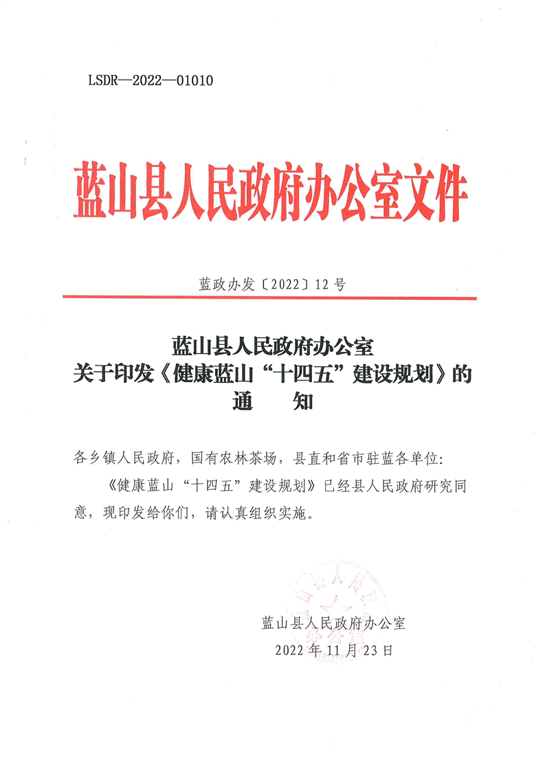 | 统一登记号: | LSDR-2022-01010 | 信息时效性: | 有效 | 文号 : | 蓝政办发〔2022〕12号 |