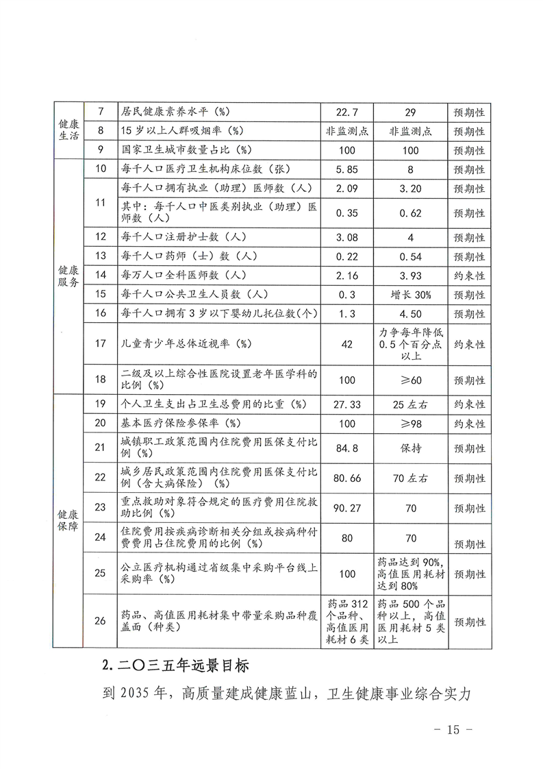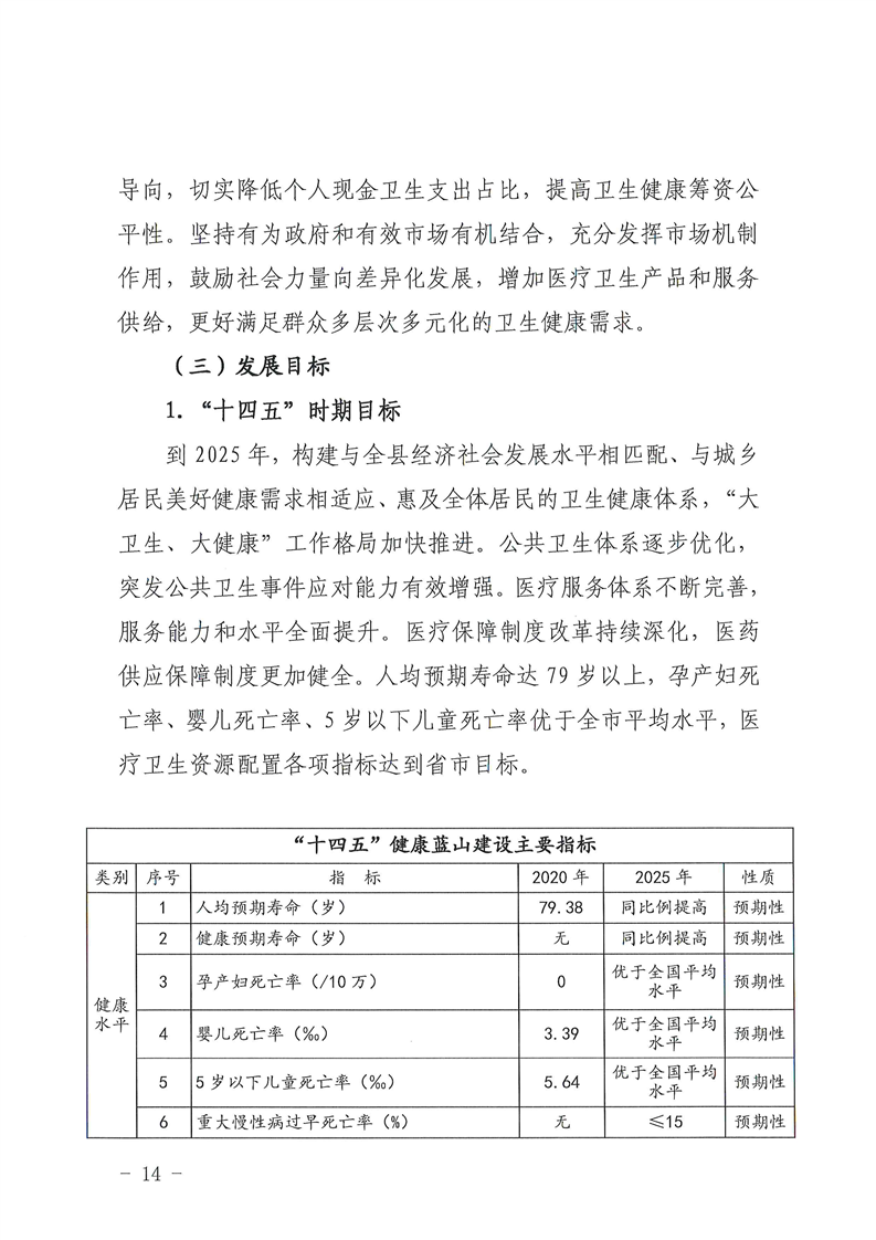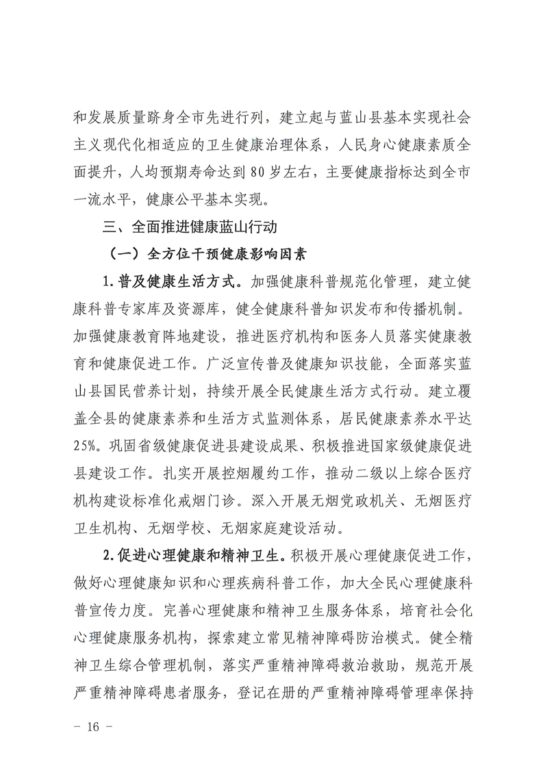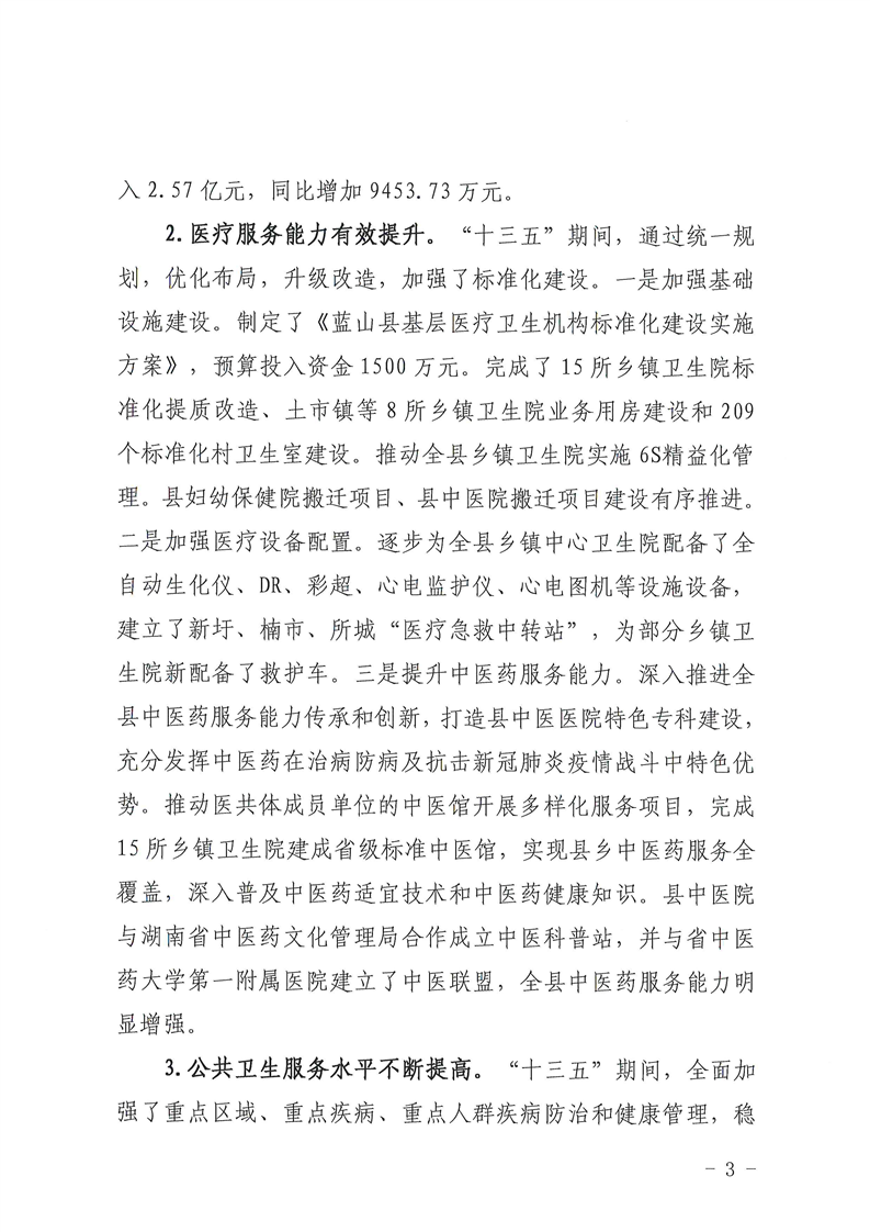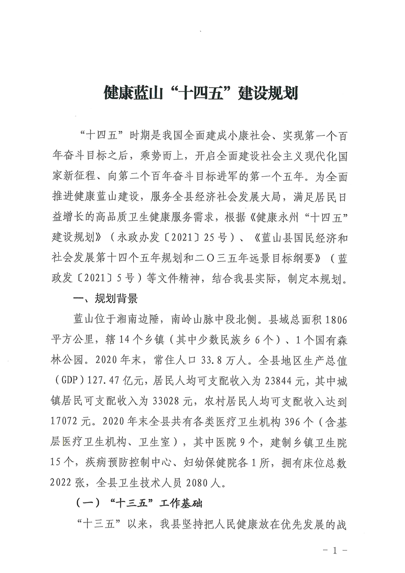 蓝山县人民政府办公室关于印发《健康蓝山“十四五”建设规划》的通知