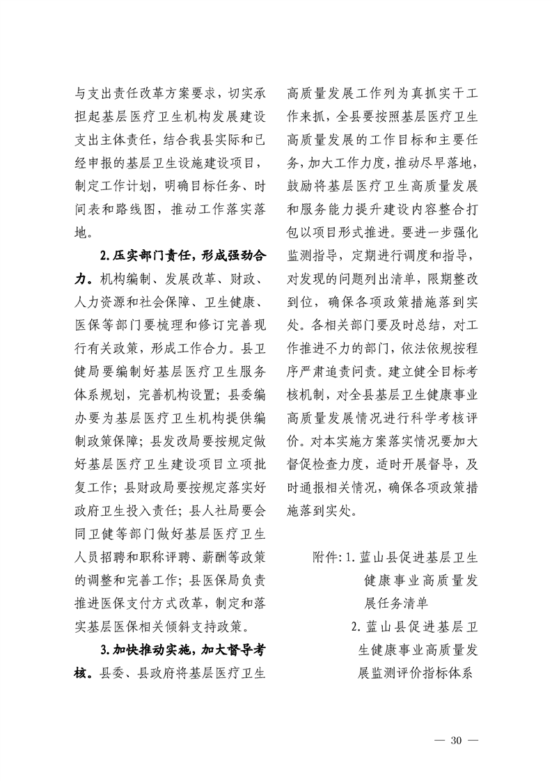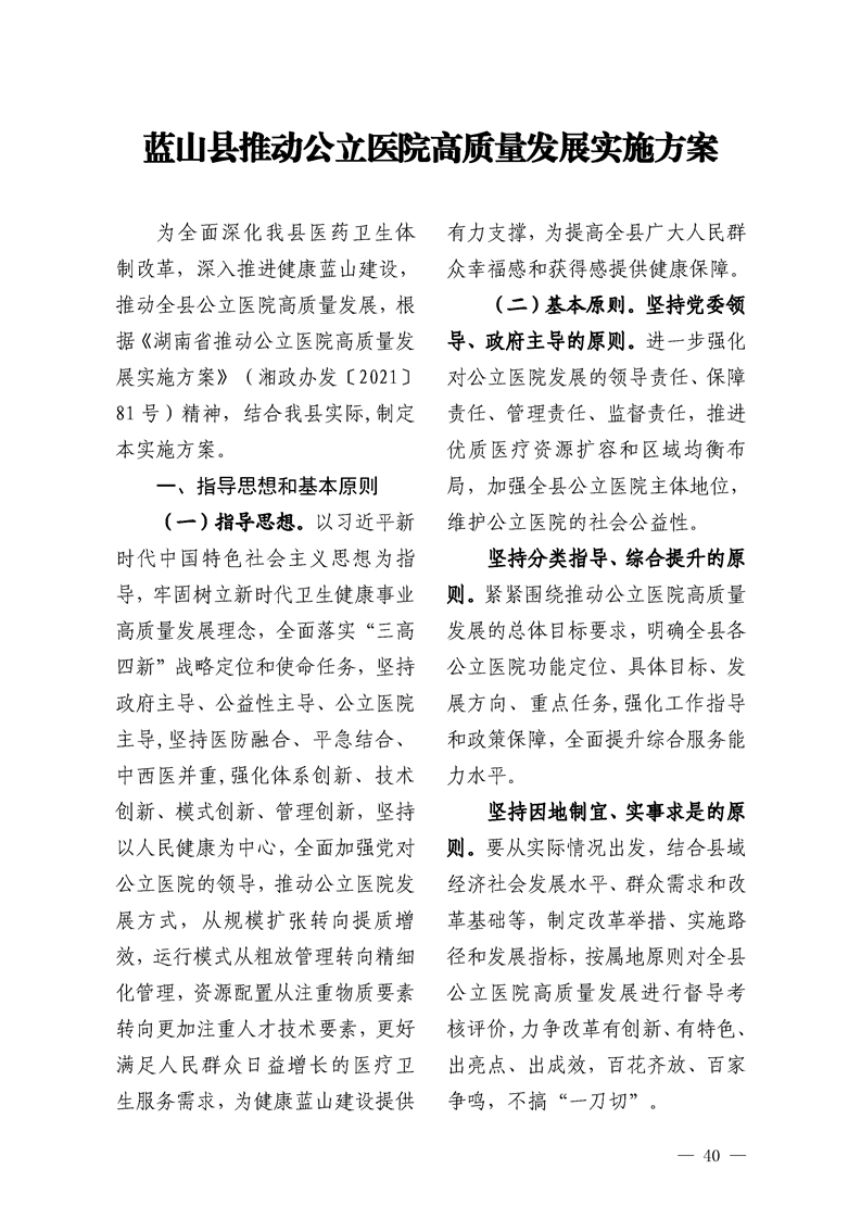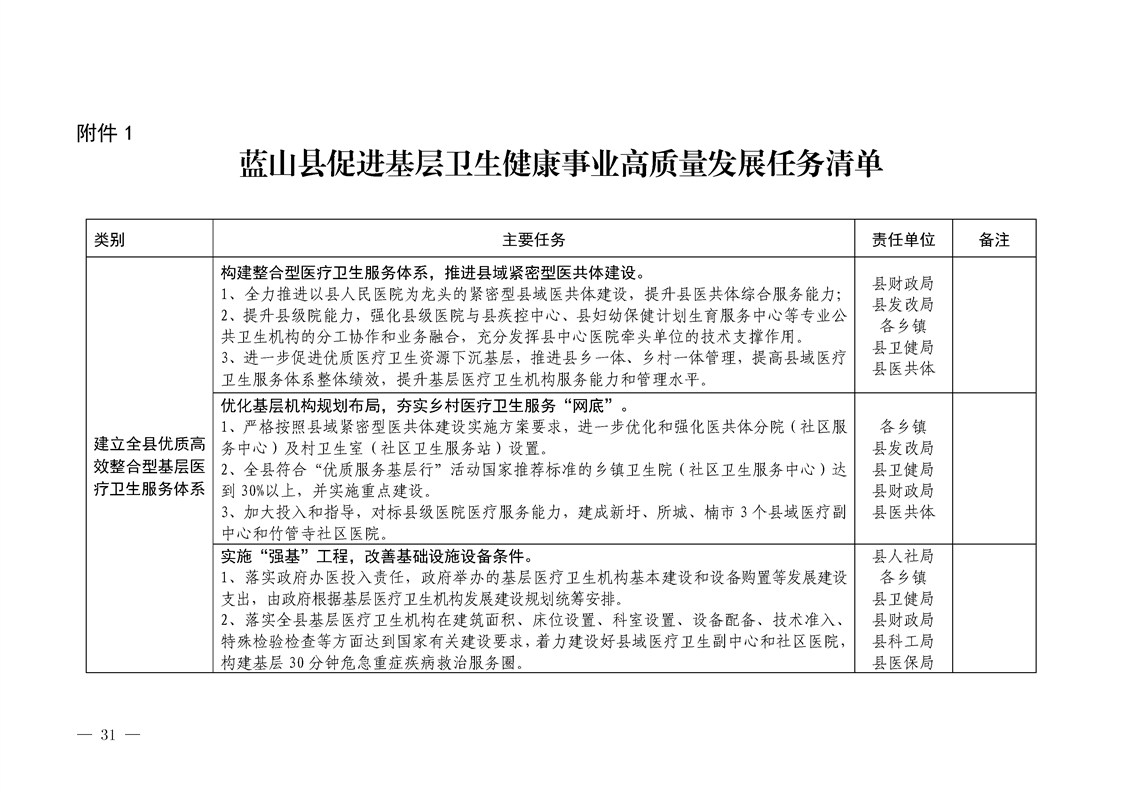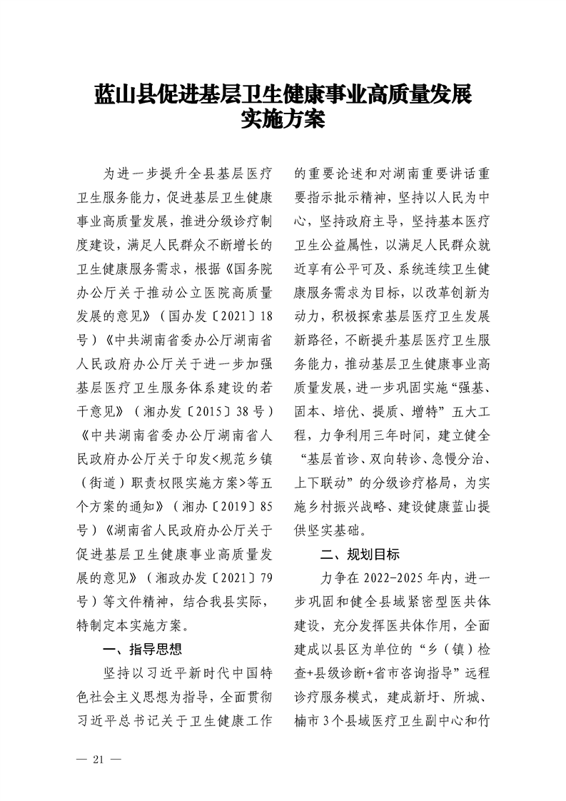 关于印发《蓝山县促进基层卫生健康事业高质量发展实施方案》和《蓝山县推动公立医院高质量发展实施方案》的通知