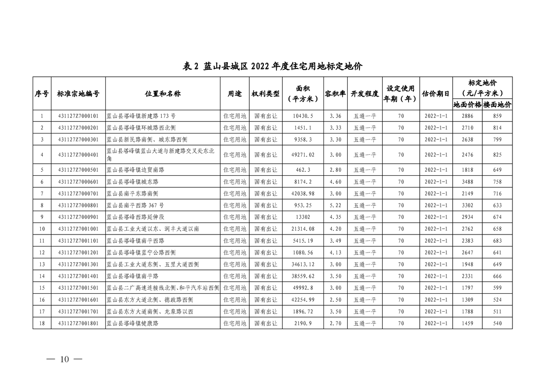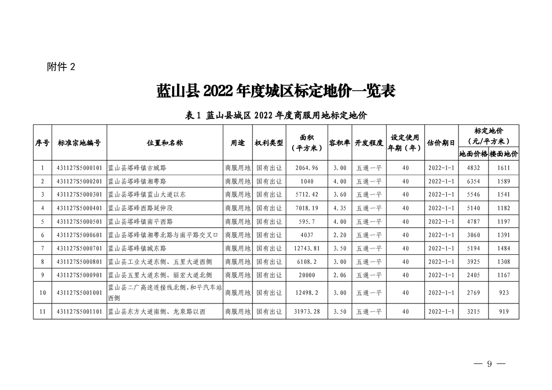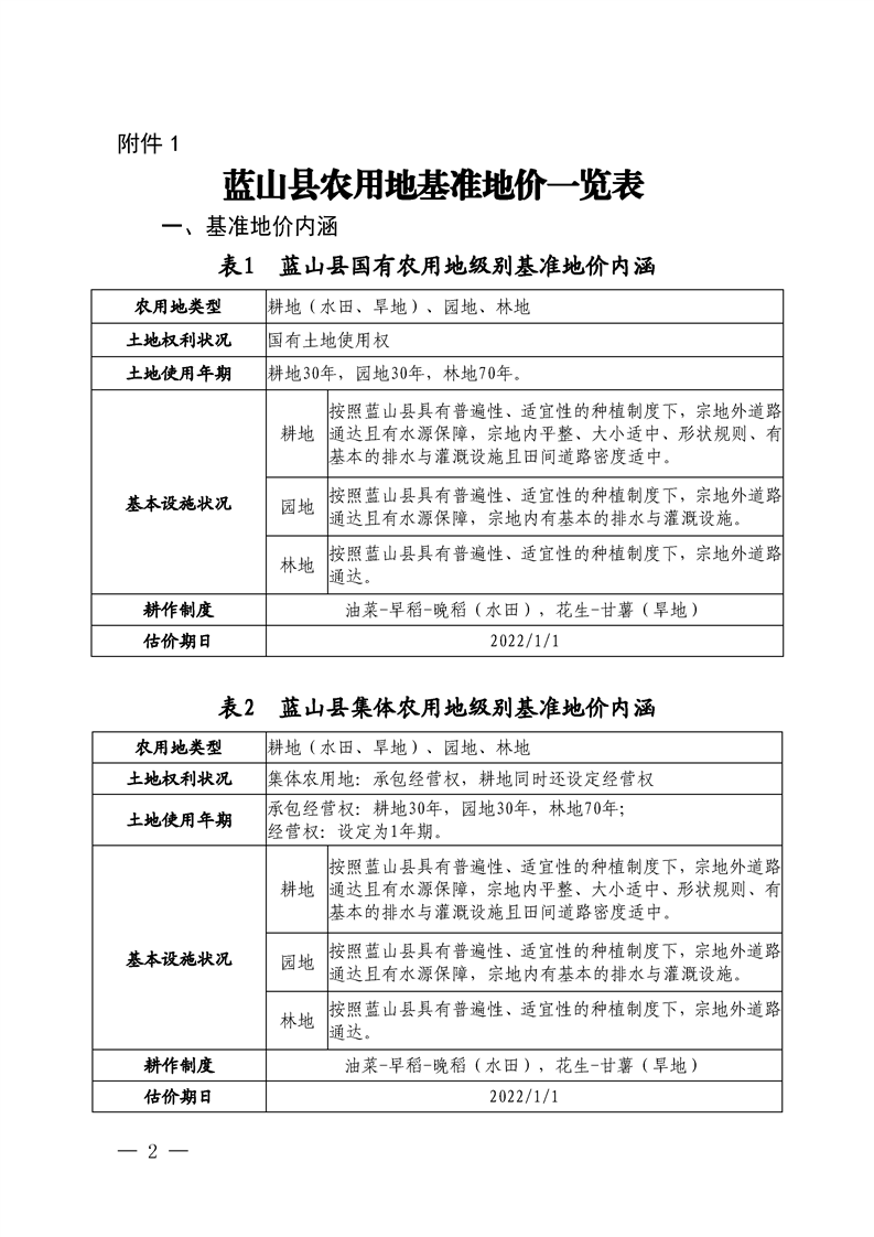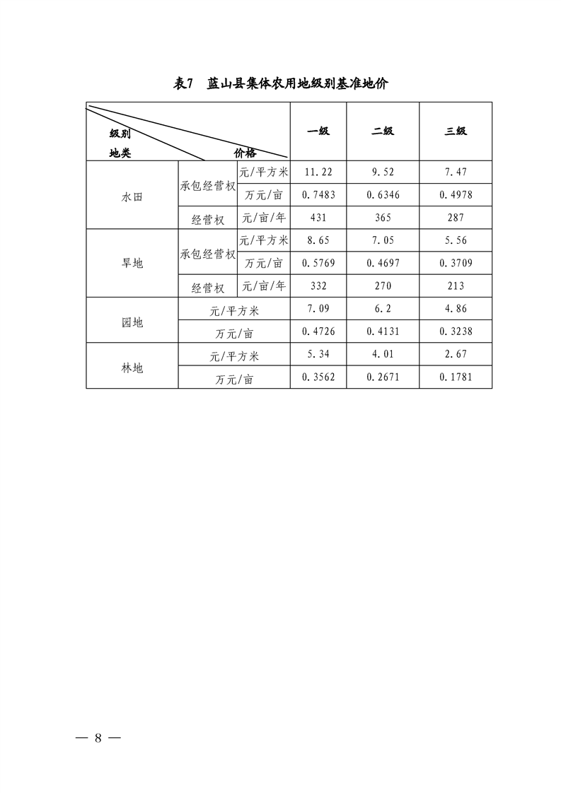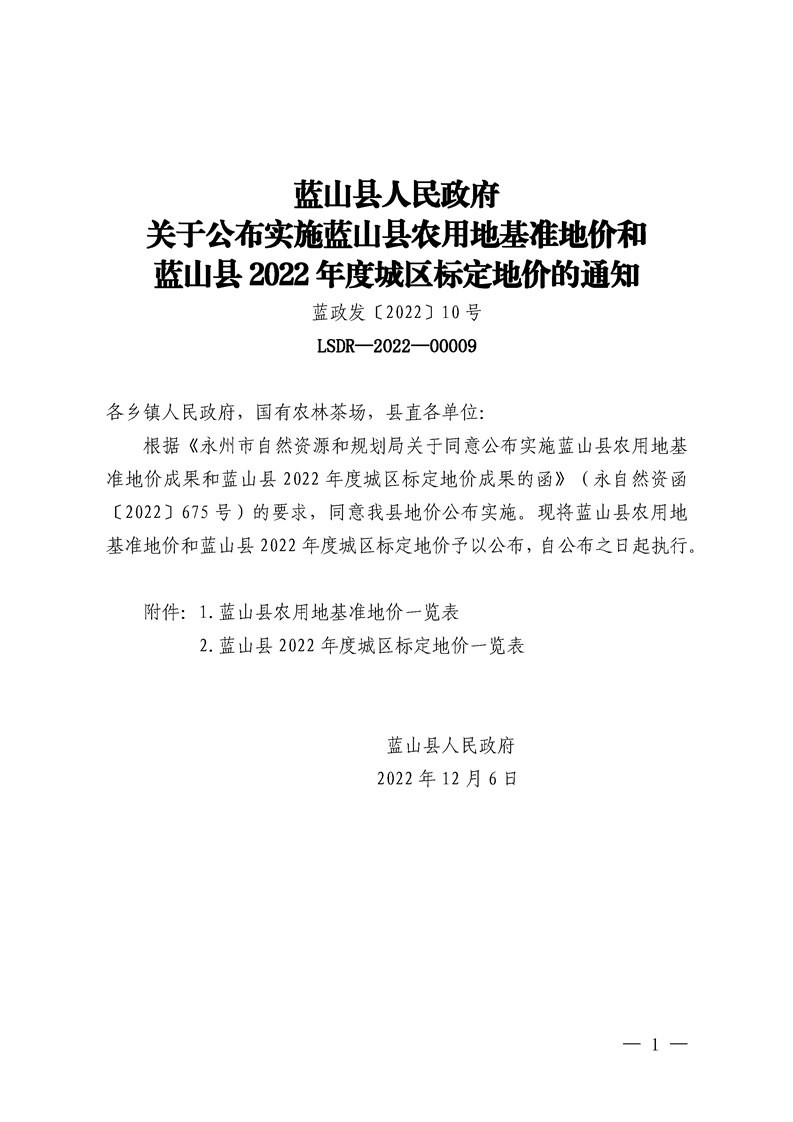 蓝山县人民政府关于公布实施蓝山县农用地基准地价和蓝山县2022 年度城区标定地价的通知