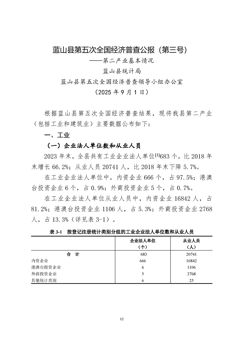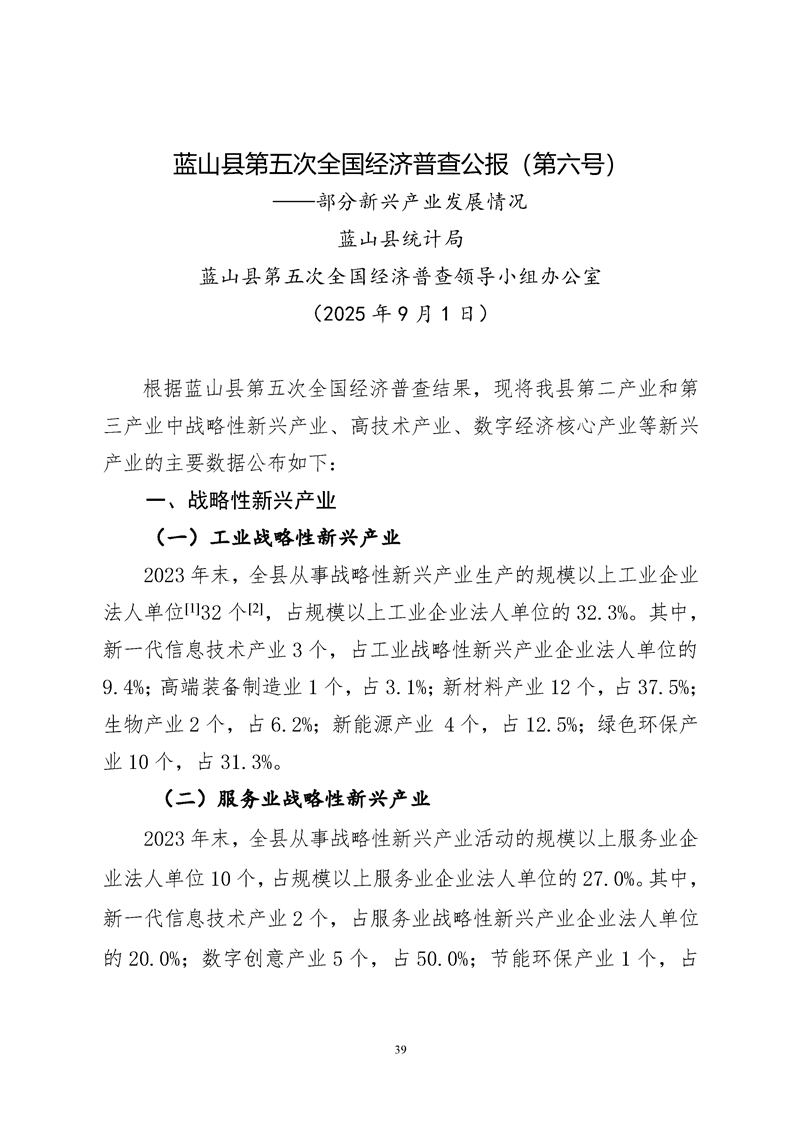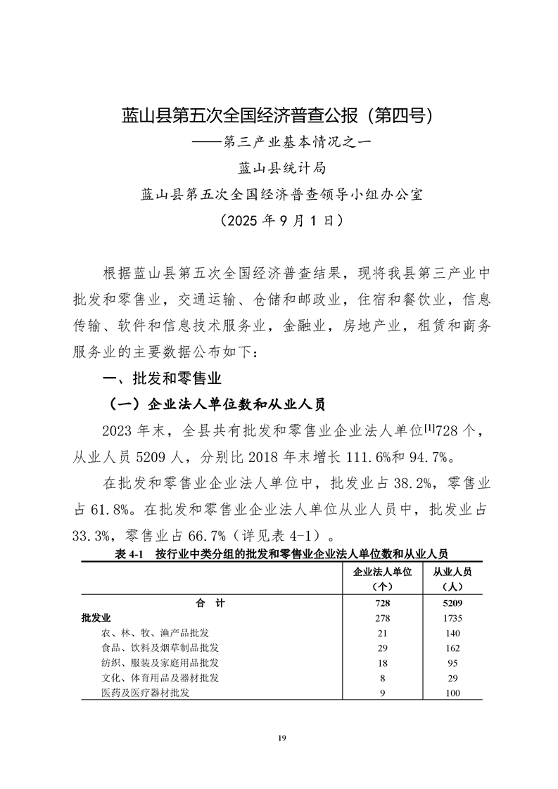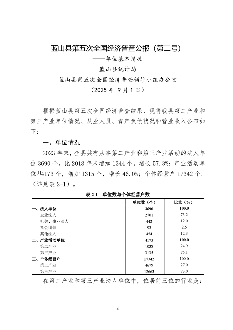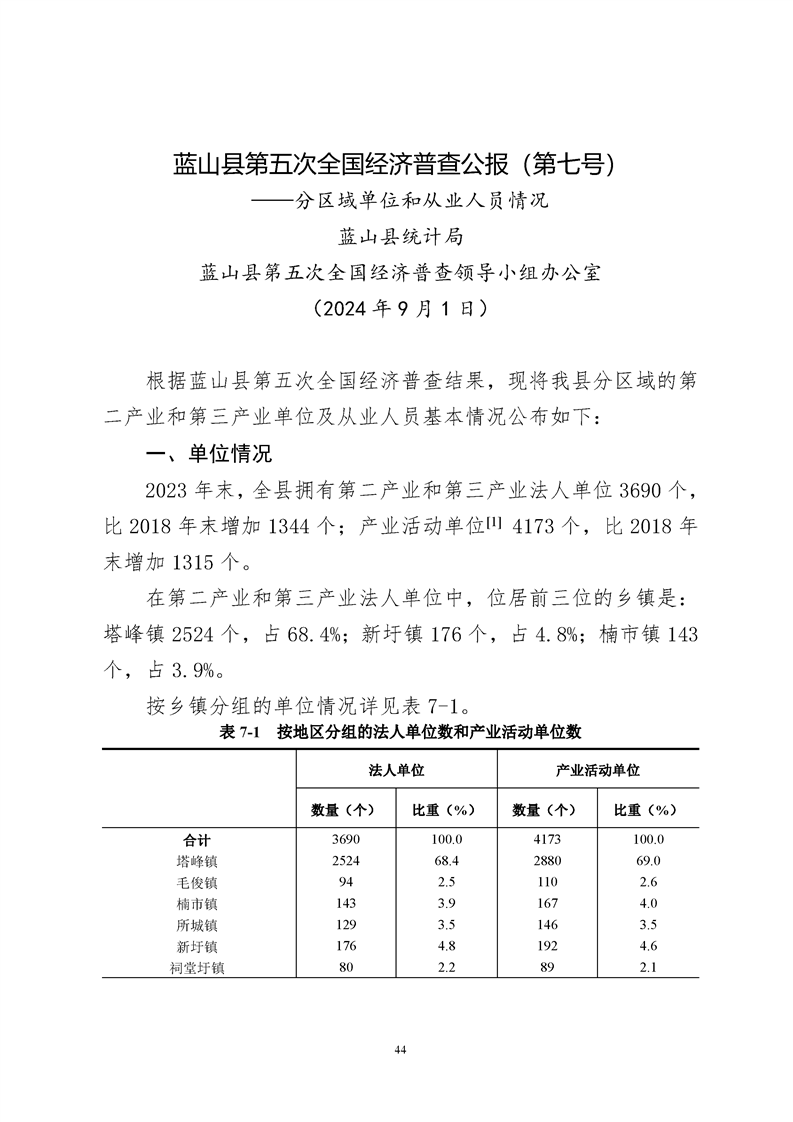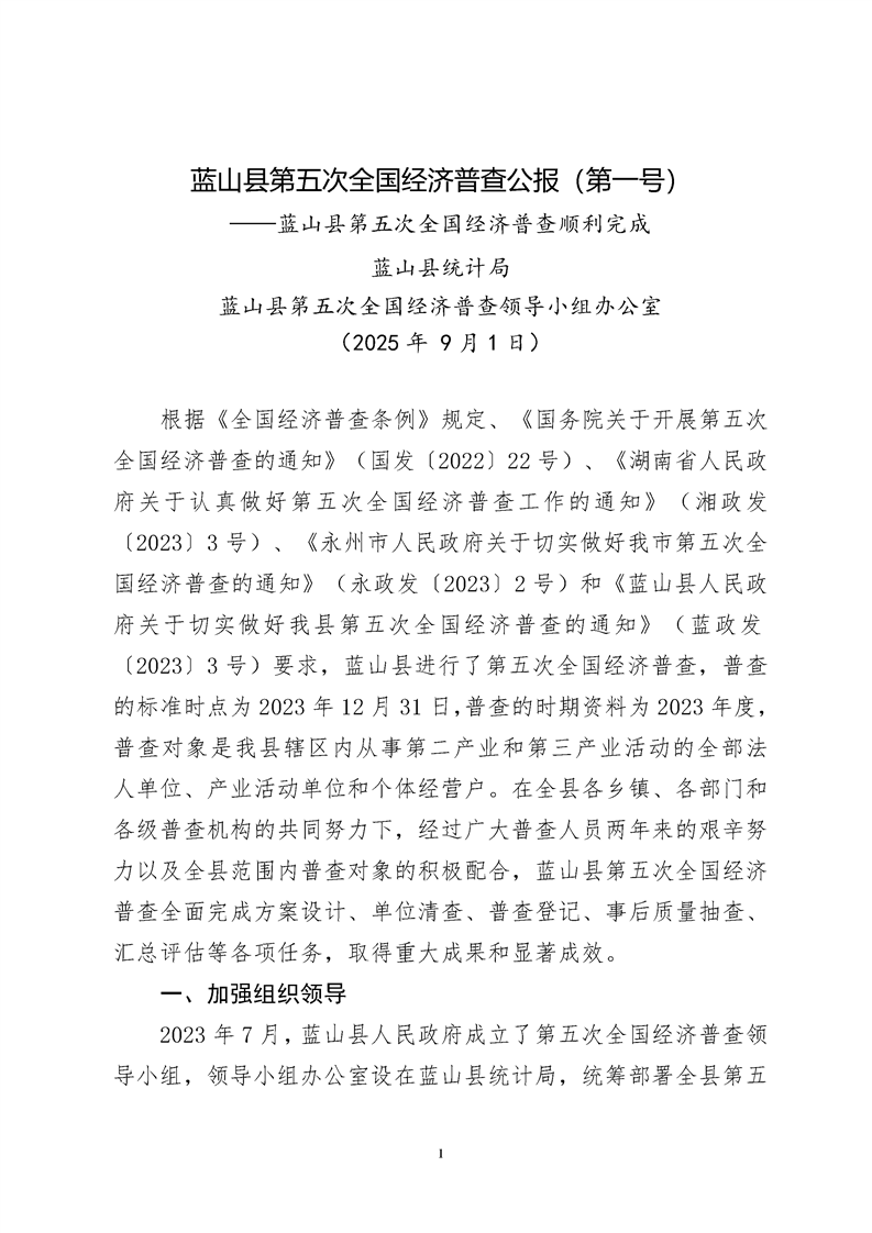 蓝山县第五次全国经济普查公报1至7号公报
