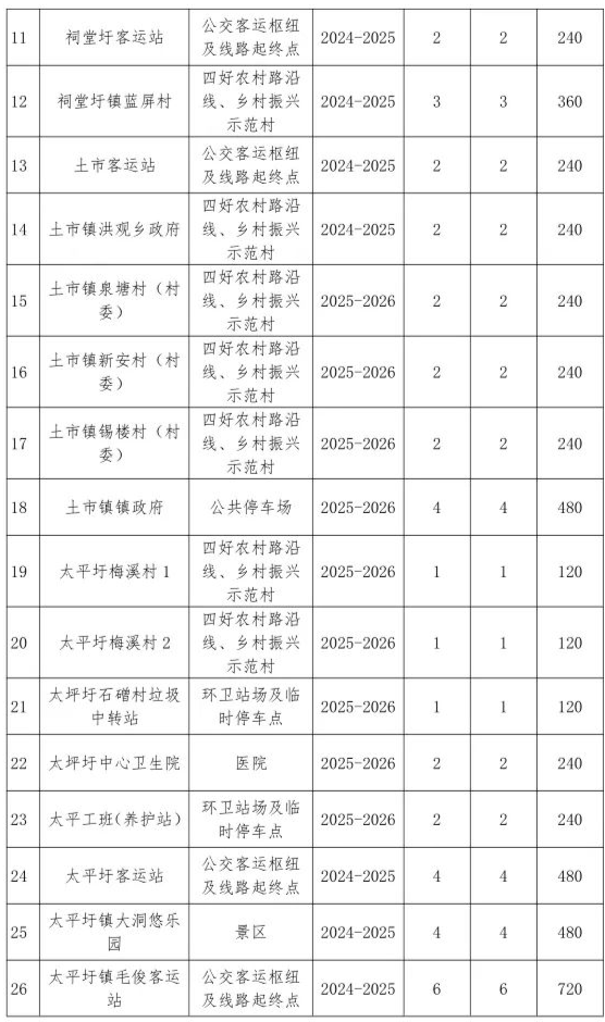 为进一步提升全县公共充电站知晓率,给大家充电提供便利,现将全县公共充电桩的具体位置及建设情况公告如下: