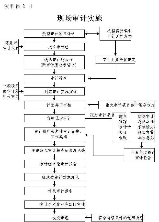 1.现场审计结束后,由审计组组长复核审计证据、工作底稿,经审计组召开审计业务会议讨论,主审草拟审计报告征求意见稿,征求被审计对象意见。